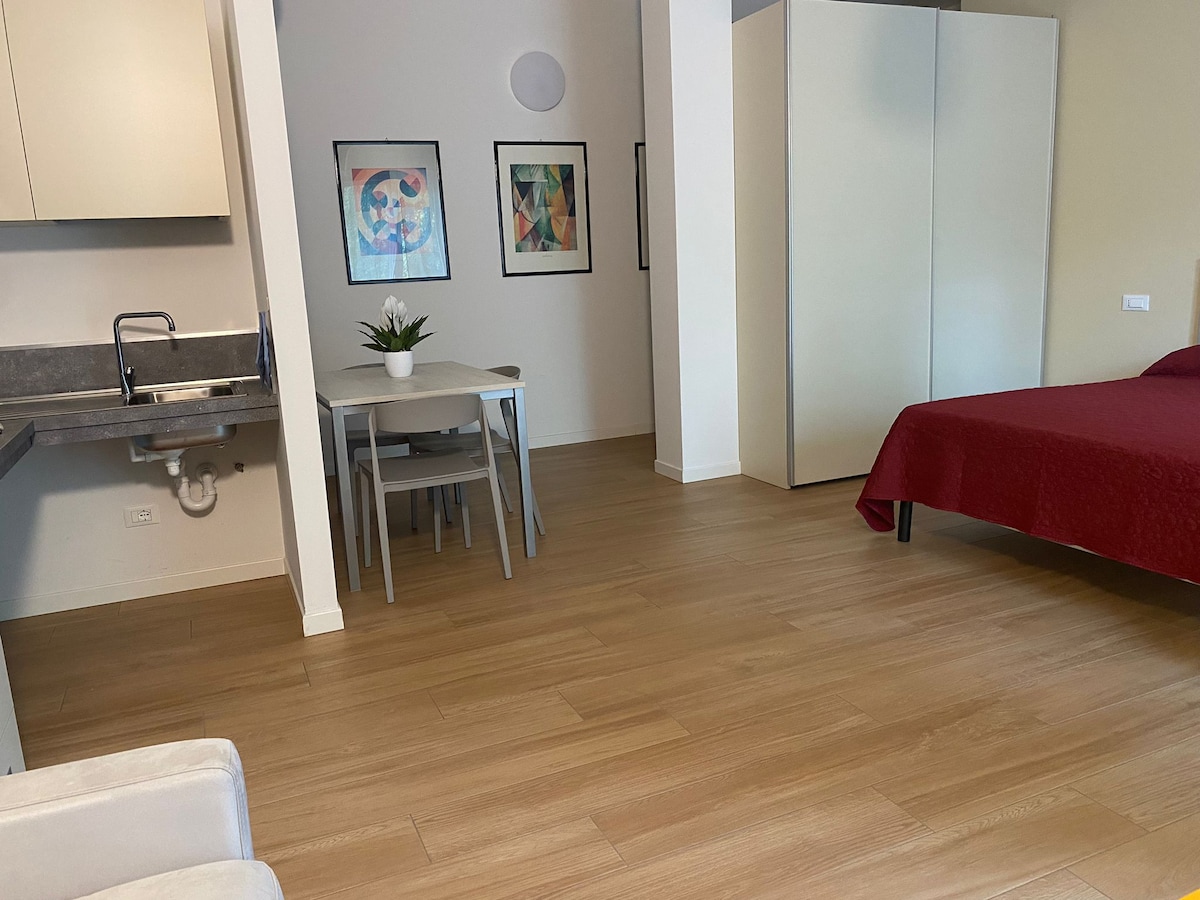 Элегантная квартира в 1,5 км от аэропорта Орио-аль-Серио (BGY), очень близко к центру Бергамо, торговому центру Orio и выставочному центру Bergamo Fair. В квартире есть спальня с двуспальной кроватью, гостиная с двуспальным диваном-кроватью, оборудованная кухня, индукционная плита, микроволновая печь, чайник, кофемашина, телевизор, Wi-Fi, кондиционер в спальне и гостиной, ванная комната с душем, фен и стиральная машина. Самостоятельное заселение и завтрак, предлагаемый нами. Парковка предоставляется по запросу.