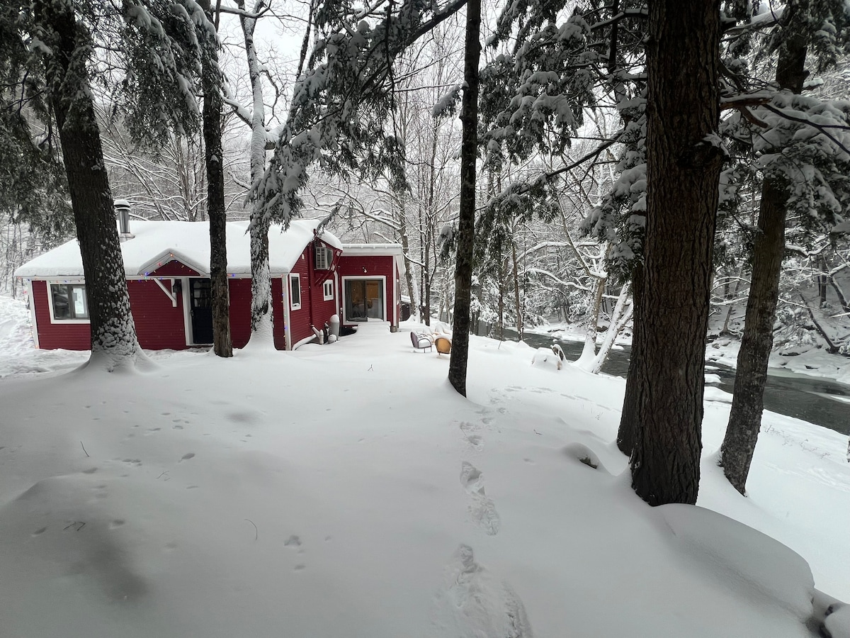 Отдохните в красивой светлой хижине глубоко в лесу в Sugar Maple Mountain Retreat. Расслабьтесь в конце дня в нашей гидромассажной ванне, которая разделена между нашими 3 домиками. В нескольких шагах от двух живописных озер можно бесплатно пользоваться нашими каяками, досками для сапсерфинга и снежной обуви. Рыбалка, катание на велосипеде, пешие прогулки по сельским дорогам или тропам на 1275 акрах охраняемой земли. Зимой прыгайте по ОБШИРНОЙ тропе неподалеку. 4 WD Требуется с 1 декабря по 15 апреля