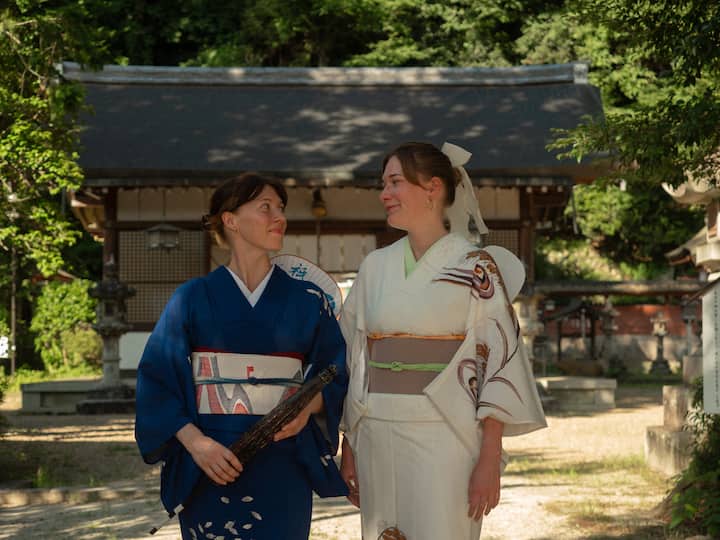 Тихое поклонение в храме Такихара с изготовлением украшений и кимоно