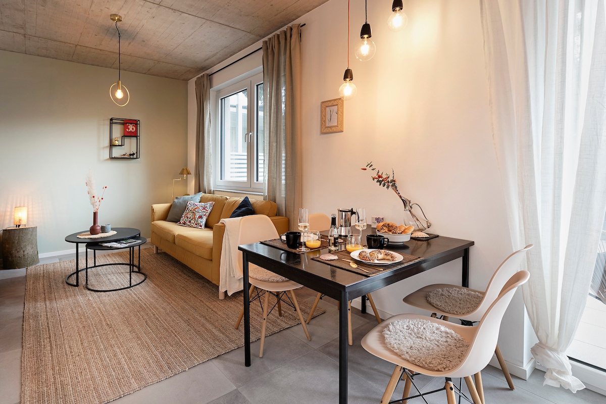 Добро пожаловать в Нойвид! 🌿 Мы (Лукас и Бритта) с любовью превратили наш бывший двойной гараж в современную квартиру площадью 80 м² с собственным садом, большой террасой, отдельным входом и парковкой. Наше жилье в настоящее время является одним из лучших в регионе – благодаря центральному расположению между Кобленцем и Бонном, бесчисленным возможностям для отдыха прямо за дверью и высокому уровню комфорта.