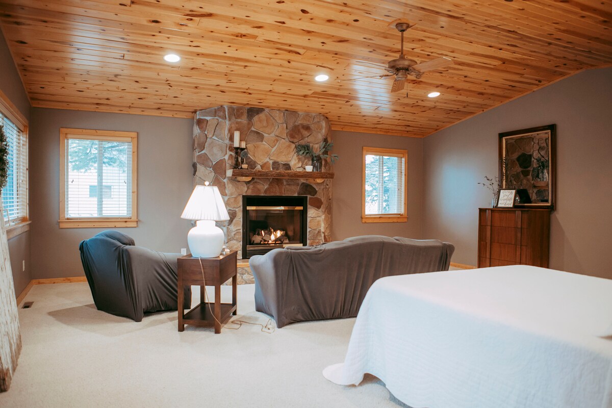 Идеальное решение для тех, кто устал сидеть дома! Этот романтичный и уединенный бревенчатый домик с видом на красивое озеро Даймонд. Две кровати размера Queen size, одна из которых регулируемая и с массажем. Газовый камин из натурального камня, массажное кресло, полностью оборудованная современная кухня, Wi-Fi, YouTube TV (местные каналы и ESPN) и потоковое вещание. Наслаждайтесь беседкой и гидромассажной ванной рядом с домиком в любое время года. Я живу через дорогу, убираю и санирую, так что я знаю, что все сделано должным образом. Примечание: предоставляется дополнительная (за дополнительную плату) игровая комната.