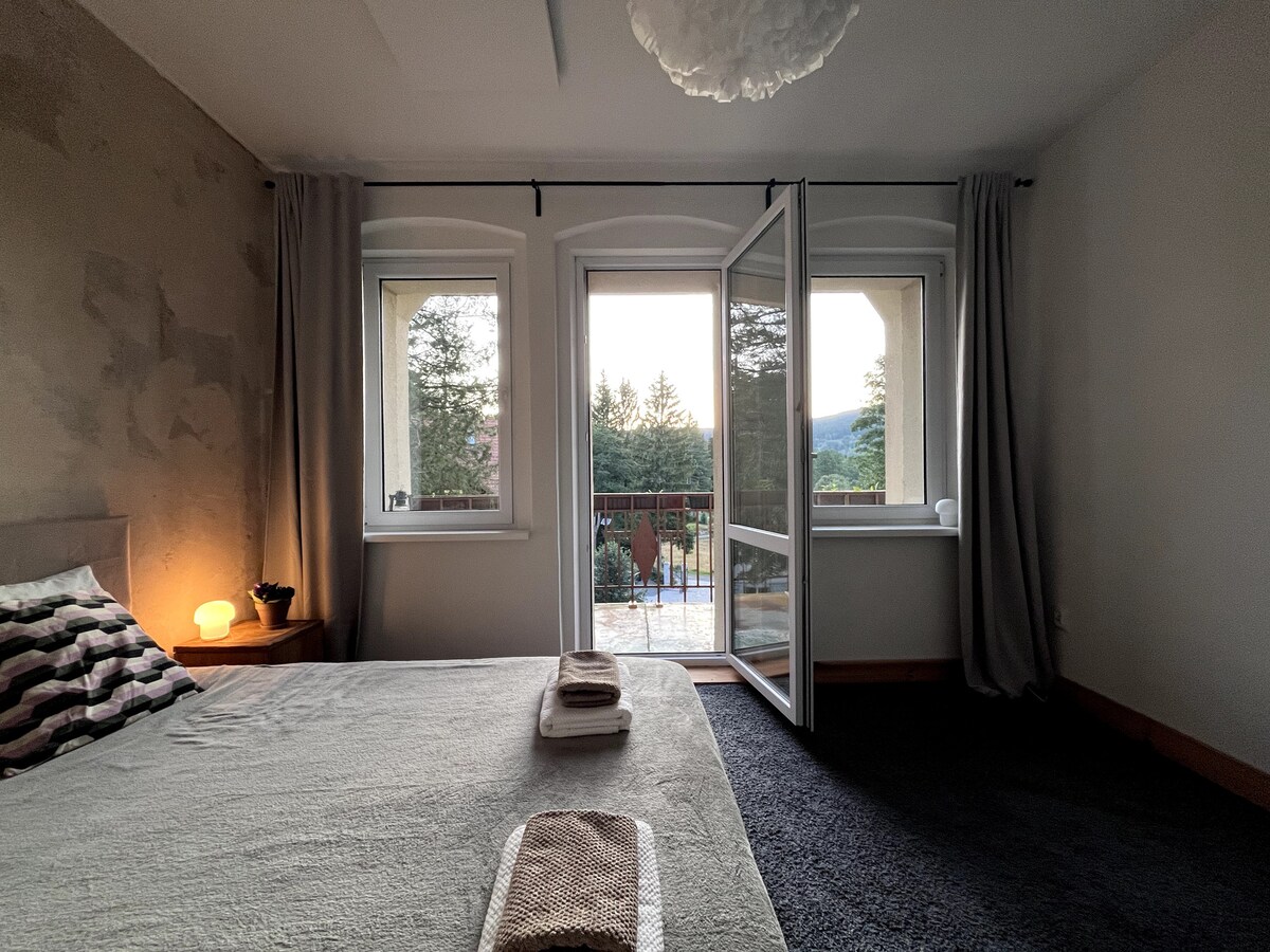 Просторная квартира, очень близко к лесным и горным тропам. Идеальное место для прогулок и велосипедных приключений. Из каждого окна открывается потрясающий вид. С одной стороны Snow Cauldrons, с другой - High Stone. Квартира расположена в красивой части Шклярска Поремба, в Белой долине. Идеальное место для тех, кто ценит тишину, покой и близость к природе Карконосана. Квартира: спальня, гостиная, кухня,ванная.