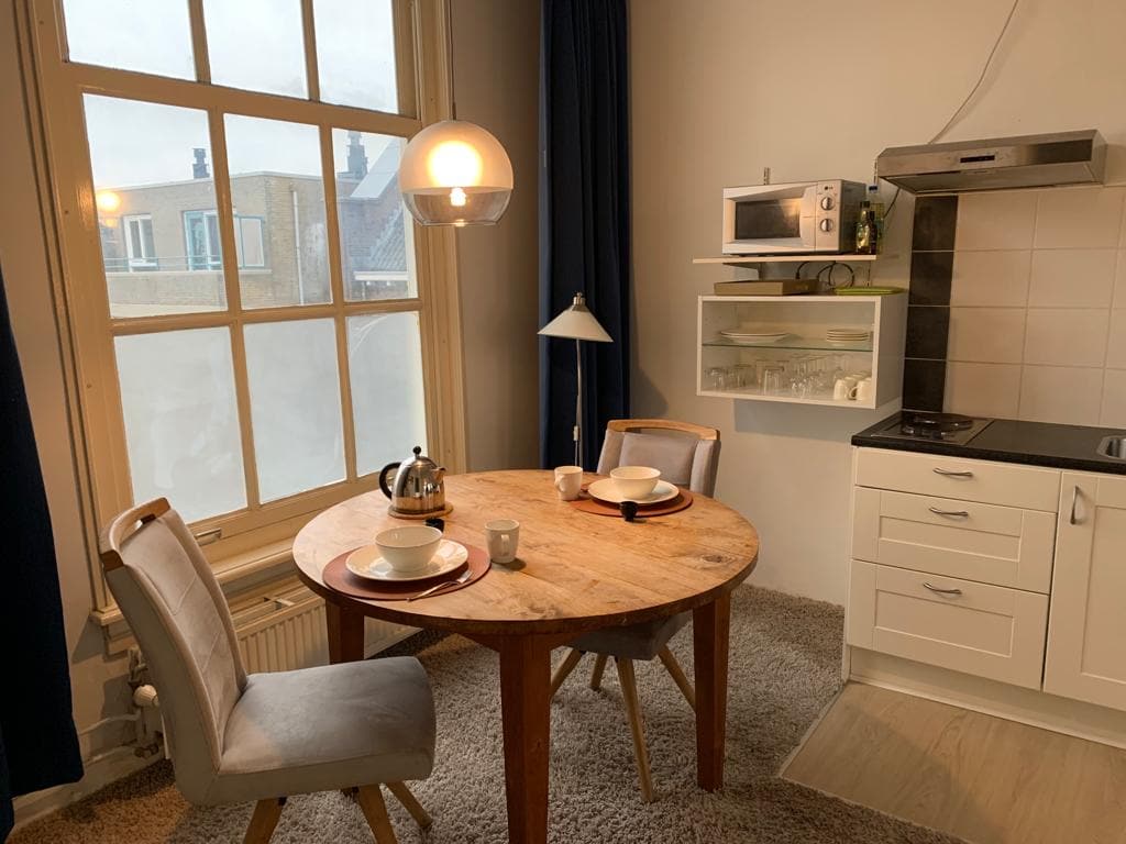Вы сможете легко добраться до всего в этом центральном месте. Квартира для 2 человек. Очень светло и просторно. 2 с половиной лестницы. До всего можно дойти пешком. Полностью оборудованная кухня, Wi-Fi и двуспальная кровать (можно разделить). Рядом с комнатой в зале есть отдельный туалет и ванная. Идеальное расположение для университета, всех достопримечательностей Утрехта или центрального вокзала. Эта квартира идеально подходит для короткого отдыха в центре Мы живем внизу.