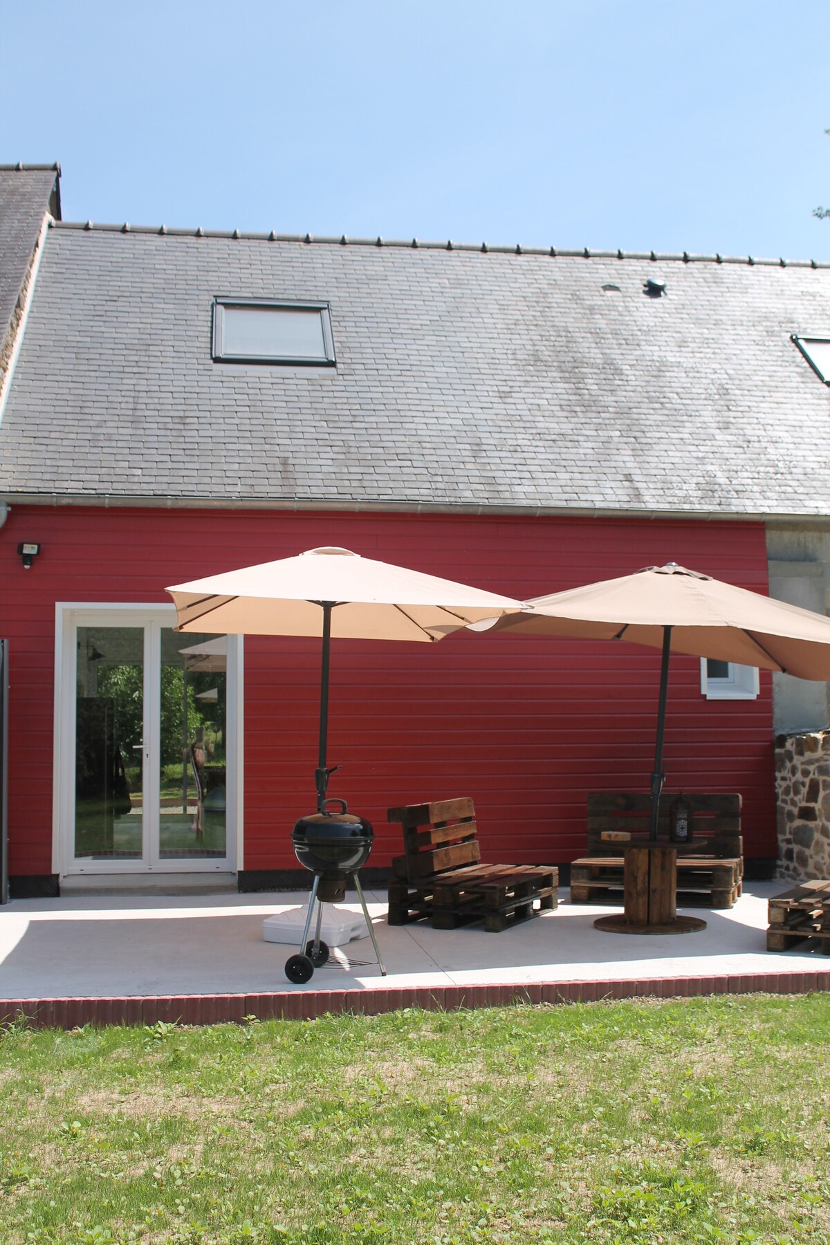 Очаровательное отпускное жилье в сельской местности, расположенное между Гранвилем и Сен-Мало, в 7 км от Мон-Сен-Мишель. В нашем жилье есть гостиная с гостиной, телевизором и полностью оборудованная кухня. Санузел с душевой кабиной, туалетом, раковиной, сушилкой для полотенец. Наверху спальня с двуспальной кроватью размера Queen size 160 x 200, а также вторая кровать типа BZ 140 x 190. Возможность детской кровати. Вокруг дома есть терраса с гостиной и садовым столом.