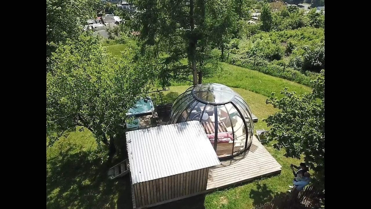 Здравствуйте, La St-Hubsphair - необычное жилье: купол, установленный в буколическом месте и идеально подходящий для Glam 'ing. Дополнительный бонус? Довольно хороший вид, верно? Мы предлагаем организовать необычные ночи на 100% настраиваемые в соответствии с вашими сумасшедшими запросами и жаждой. 😝