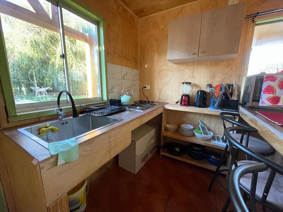 Добро пожаловать в наш уютный домик в Нехуэнте! Этот очаровательный домик идеально подходит для 6 человек и оснащен дровяным отоплением, Smart TV, удобными кроватями с простынями и постельным бельем, полностью оборудованной кухней и современной ванной комнатой. Идеально подходит для семьи или друзей, он предлагает уютный отдых в окружении природы, впечатляющего побережья реки Империал и пляжа Монкул. Забронируйте незабываемые впечатления от Nehuentue!