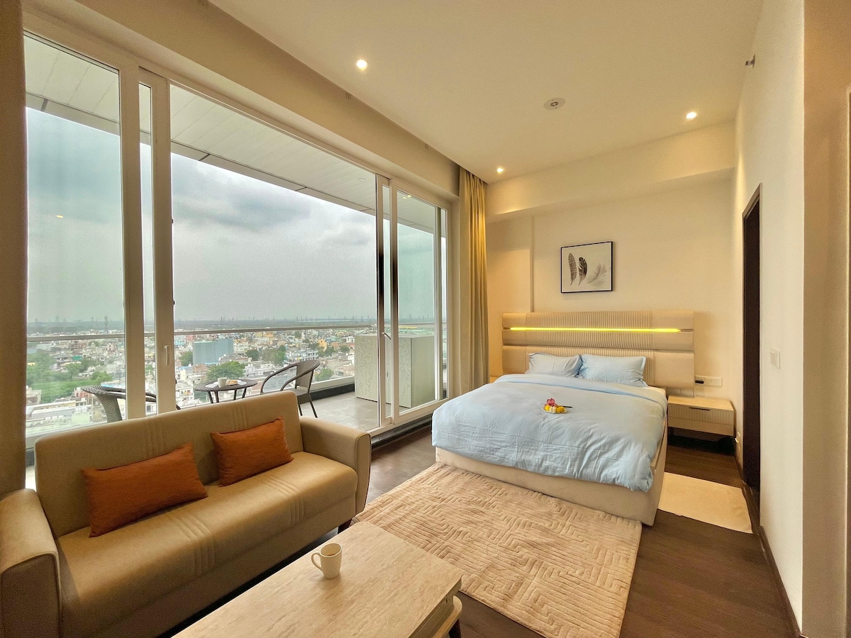 Kick back and relax in this calm, stylish space. Cozy and lavish studio on the 9th floor with scenic views, located in Sector 102 on Dwarka Expressway. Direct access to mall with shopping, dining & entertainment. Fully furnished with modern amenities, high-speed Wi-Fi, and premium interiors. 24/7 security, underground parking, and seamless connectivity. Perfect blend of comfort, style & convenience for both short and long stays.