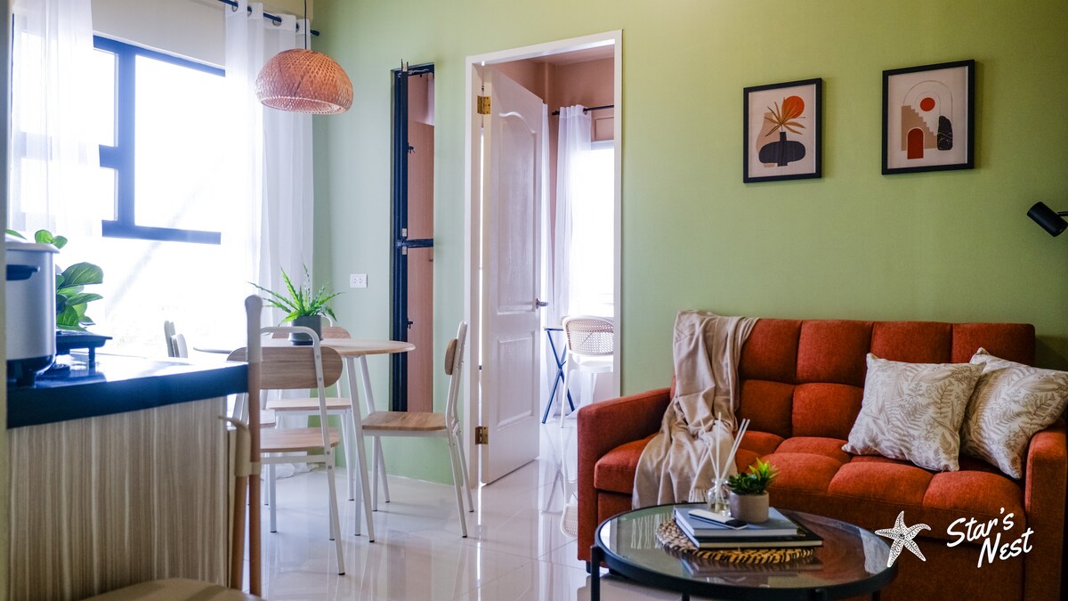 Enjoy a stylish experience at this centrally located place. Relax in this entirely cozy, modern and vibrant condo unit that is conveniently located near Mactan International Airport. Where it is close to everything like restaurants, coffee shops, laundry shops, malls and supermarket. - 3-5 minutes away from Mactan Airport - High-Speed Internet up to 200 Mbps - 65 inches TV with free Netflix - 1 Bedroom w/ 1 queen-size bed & 1 Foldable double size bed - Washing Machine -Fully equipped kitchen