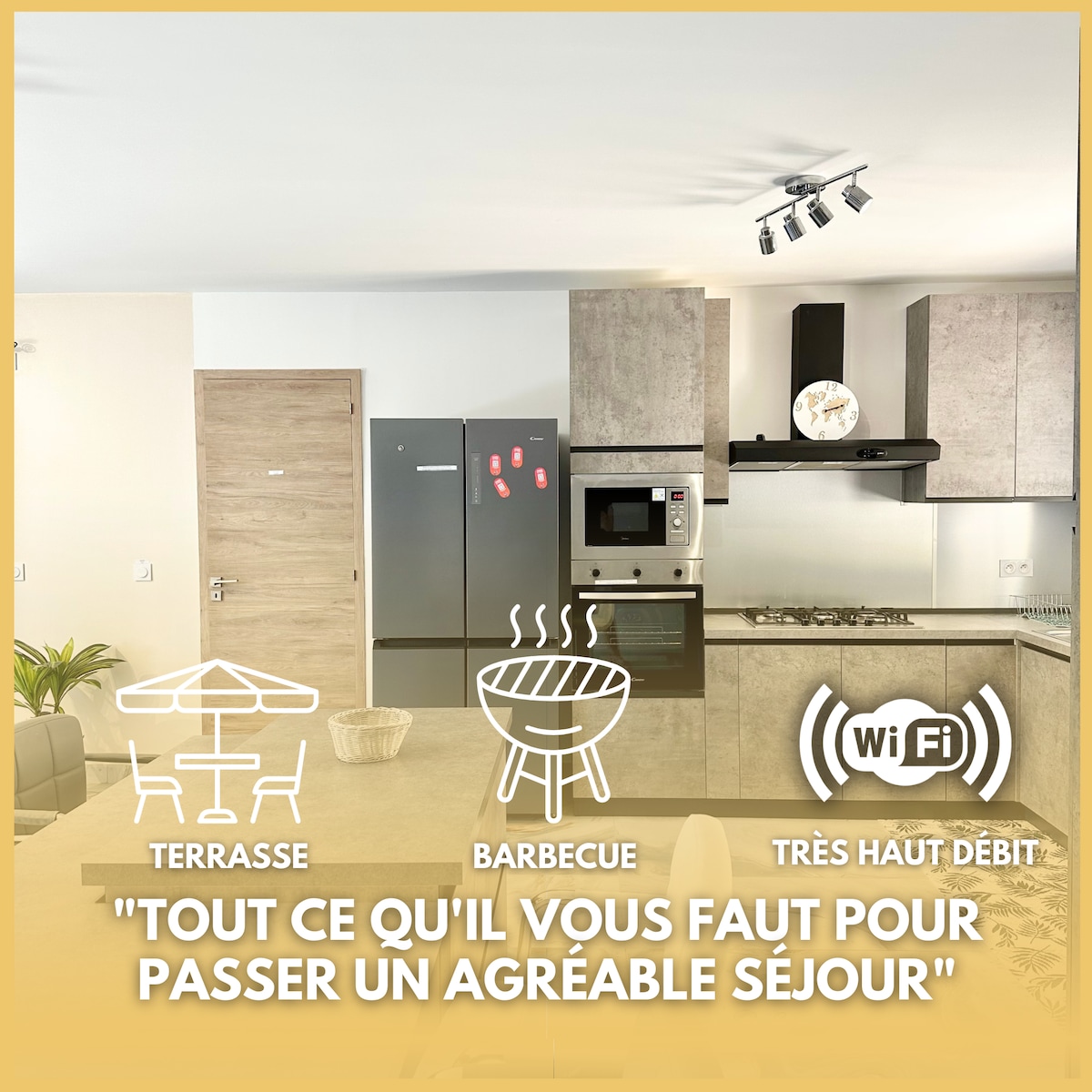 Площадь La Chenille площадью 65 м2 соблазнит группы из 4 человек в своем индустриальном стиле и красивой сводчатой гостиной. Жилье состоит из спальни с большой кроватью 160 х 200 см, красивой спальной зоны с 2 односпальными кроватями (90 х 200), раскладного дивана, функционально оборудованной кухни, ванной комнаты и отдельного туалета. Красивое придомовая территория ждет вас за зелеными блюдами. Удобно и дружелюбно, местоположение отапливается у пола.