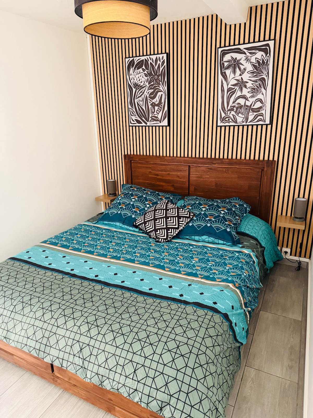 Большая T2 очень хорошо оборудованная У вас будет просторная комната, оборудованная двуспальной кроватью, подкрепленная ванной с душевой. На приготовленной стороне у вас будет все необходимое, чтобы приготовить блюда по вашему выбору. Интернет /офисная зона Парковка в огороженном дворе. Доступная терраса и сад. Стиральная машина