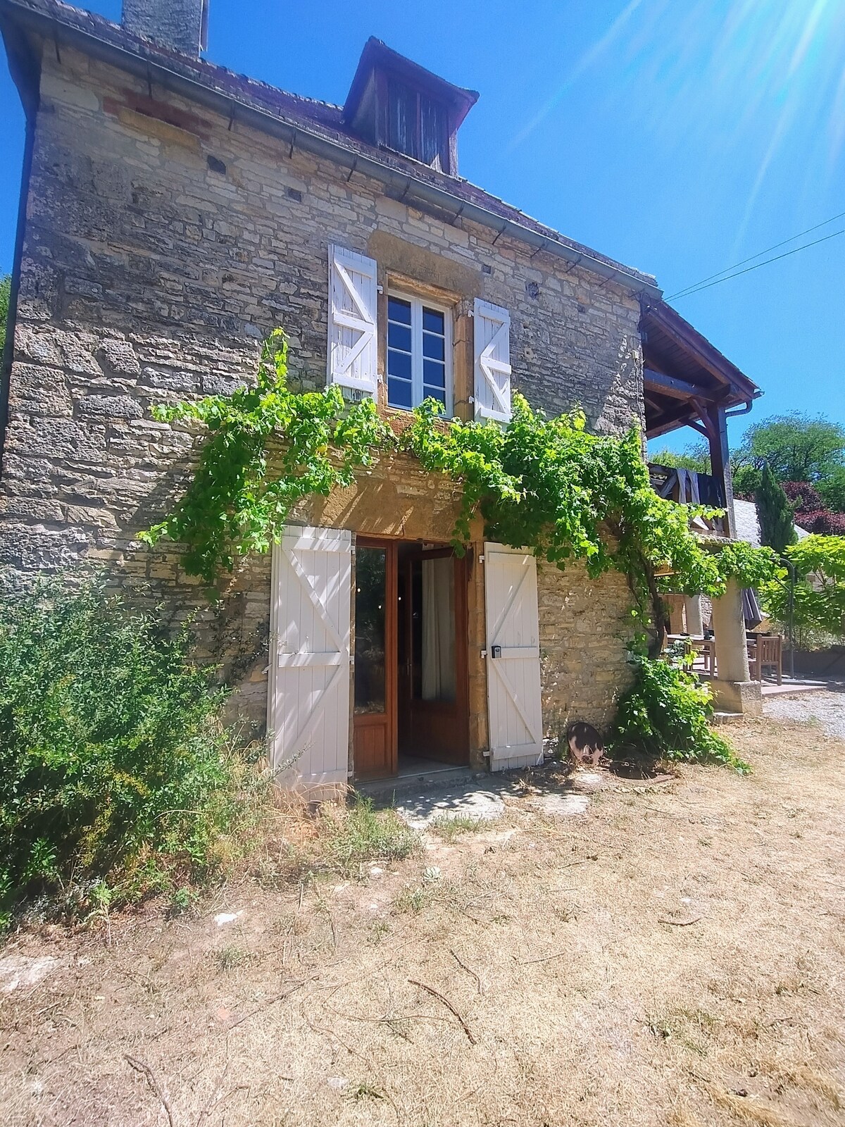 Situé dans une grange du 19e siècle entièrement rénovée, cet appartement de 35m2 vous permet de passer un séjour dans une région agréable. Pour 2 adultes + un bébé (kit BB gratuit sur dde), vous pouvez profiter d'une piscine intérieure (fonctionnelle et chauffée tte l'année) et d'un jardin en commun avec les 4 autres logements. Cuisine tte équipée, lave-vaisselle, lave linge. Commerces et bases de canoës de la rivière Dordogne à 200m. Location possible draps et linge de toilette.