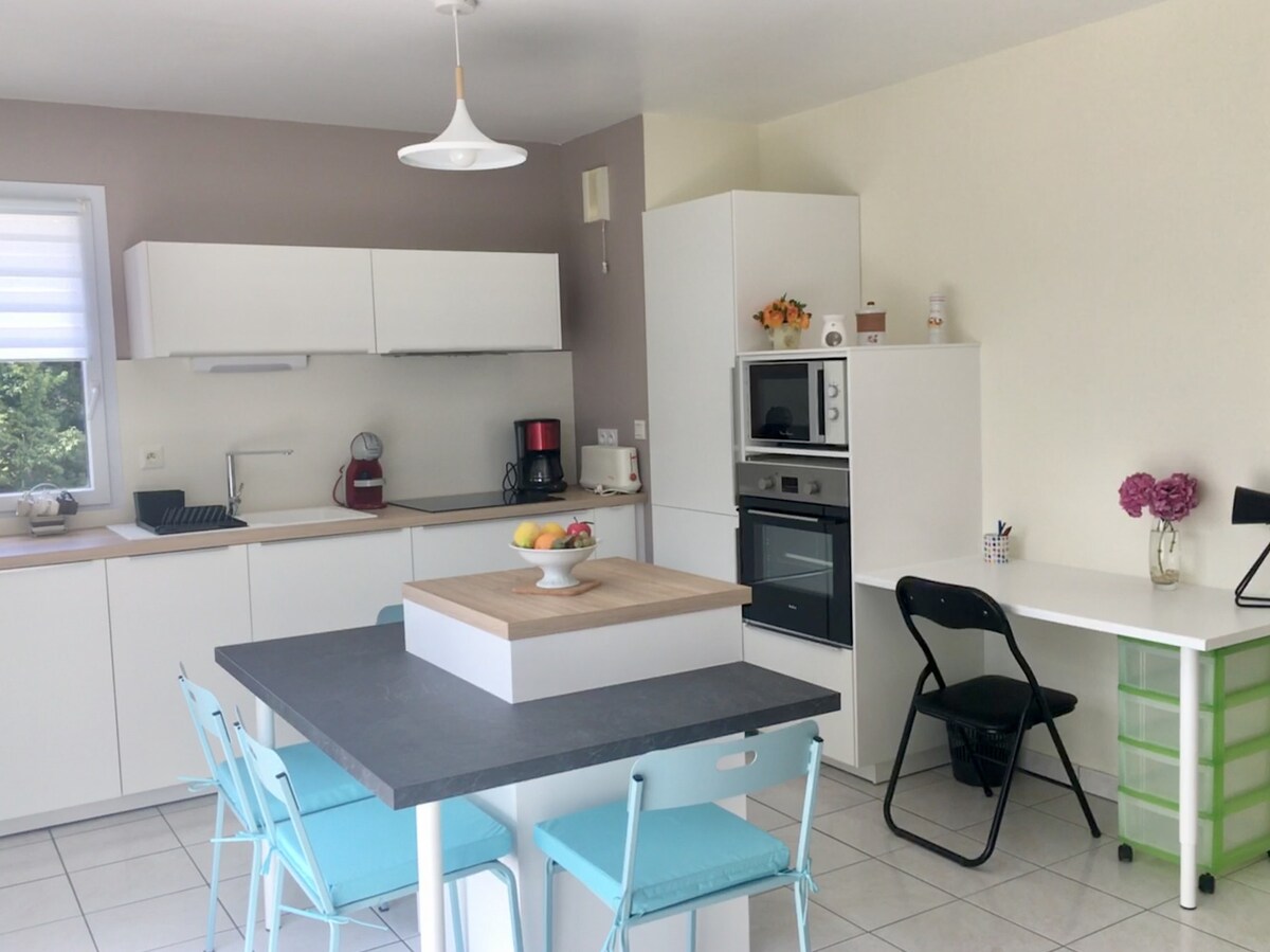 Мы с удовольствием приветствуем вас в этом просторном T2 ( 56 м2) , тихом и светлом (южная экспозиция) в 2 шагах от сельской местности. Парковочное место зарезервировано для вашего автомобиля у подножья жилья. Он идеально оборудован для краткосрочного и длительного проживания, отдыха или профессиональных поездок. Вы можете насладиться его террасой в солнечные дни. Жилье расположено на северо-западе Ренна, напротив кампуса The Land, транспорт (C4 и линия 12 ) и магазины находятся менее чем в 10 минутах ходьбы.
