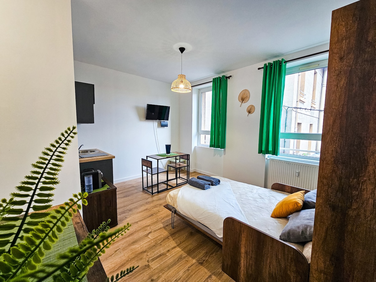 ⚠️Façade du bâtiment en cours de rénovation énergétique⚠️ Détendez-vous dans ce charmant studio fraîchement rénové, idéal pour un séjour pratique et confortable à Saint-Étienne. Le logement dispose d’un espace salon/chambre avec un canapé, une Smart TV, un coin nuit et tout le nécessaire pour vous sentir comme chez vous : cuisine équipée, lave-linge, rangements... Situé en rez-de-chaussée, il donne directement sur le jardin à l’arrière de l’immeuble, vous offrant calme et verdure.