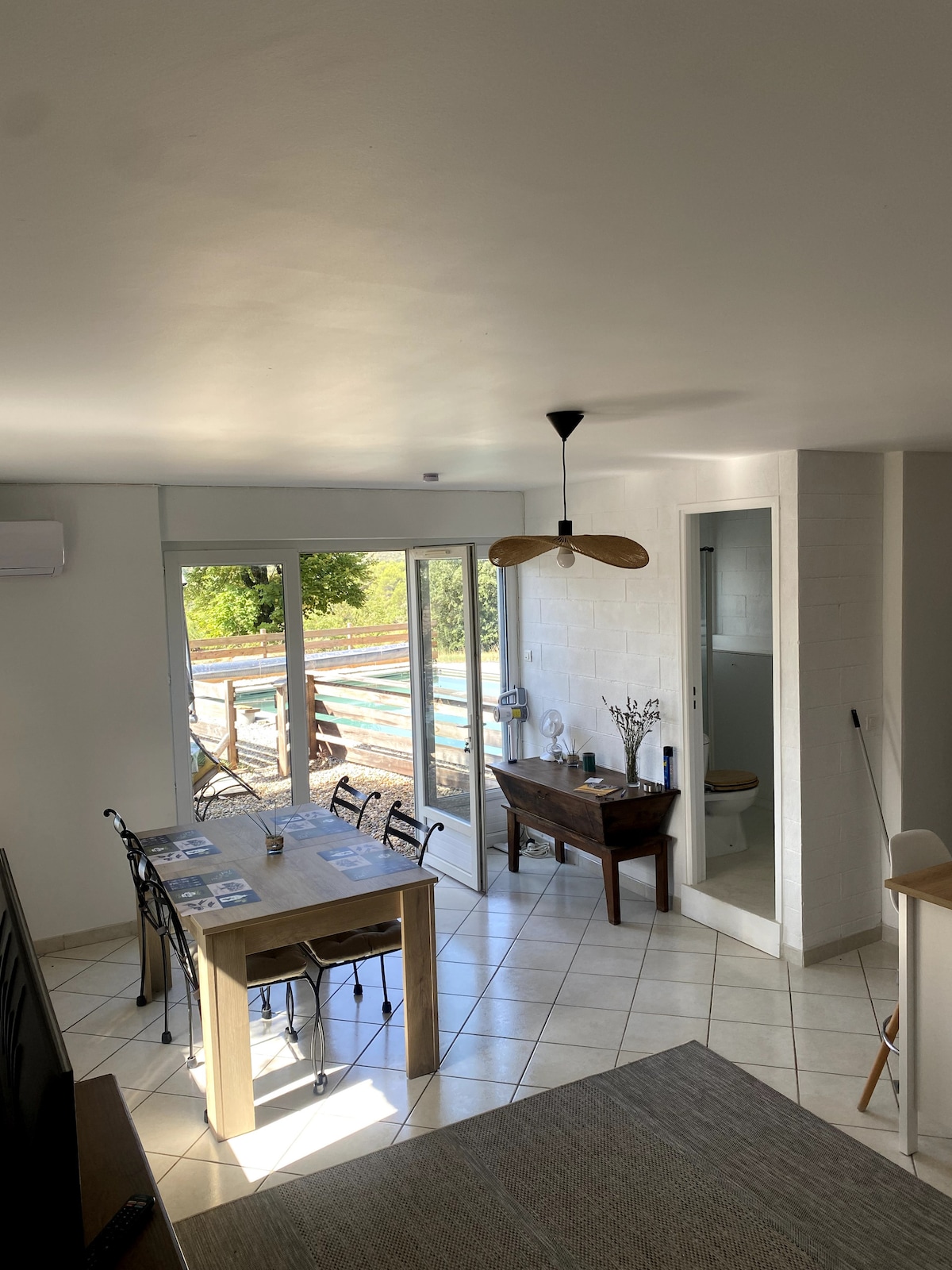В нашем полностью оборудованном коттедже есть собственная терраса с видом на Мон-Ванту. В поисках спокойствия наш коттедж по своей природе идеально подходит для спокойного отдыха. Для любителей спорта: велоспорт, пешие прогулки, купание в Тулуренце, место для скалолазания La Baleine Во время школьных каникул мы предпочитаем еженедельную аренду. Постельное белье - полотенца не включены. Доступен гостевой семейный бассейн: июль август.