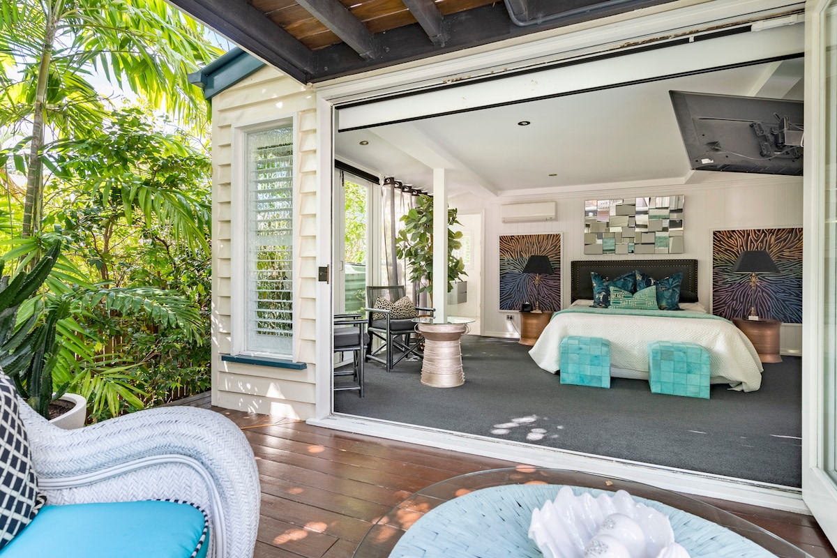 Добро пожаловать в Cotch Beach Studio: эксклюзивное жилье для семей, пар и одиночных гостей. Роскошный новый бассейн, бар для купания и джакузи 37C СРЕДИ пляжного песка и пышных садов. Внутри. Насладитесь элегантностью 100 кв. м с египетскими известняковыми полами, камином, кухней, телевизором и игровой комнатой. Спальня - это безмятежное убежище, украшенное очаровательной хрустальной люстрой. Идеальное сочетание очарования греческих островов и ретро-гламура в Майами манит в центре Брисбена.