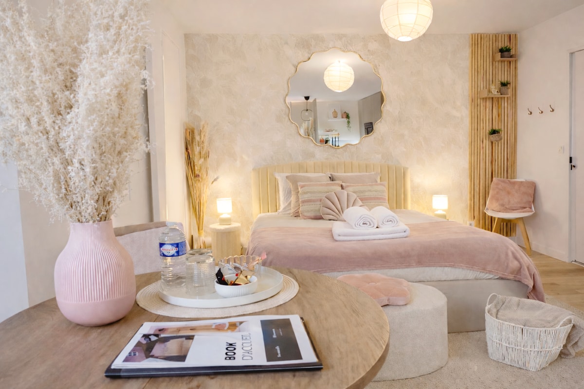 ✨ Когда мечта сбывается Погрузитесь в атмосферу сладости в центре Вернона, рядом с железнодорожным вокзалом 🚉 и автобусами 🚌 до Живерни 🌆 Отличное расположение 📍 Всего в 300 метрах от центра города, берега Сены для прогулок. 🕯️ Теплая атмосфера Изысканный 🎨 декор, уютная атмосфера и звездный потолок для волшебного и успокаивающего отдыха 🔥 Электрический камин. ✨ Позвольте себе окунуться в мягкое сияние и потрескивание камина, чтобы провести уютные и романтические вечера!