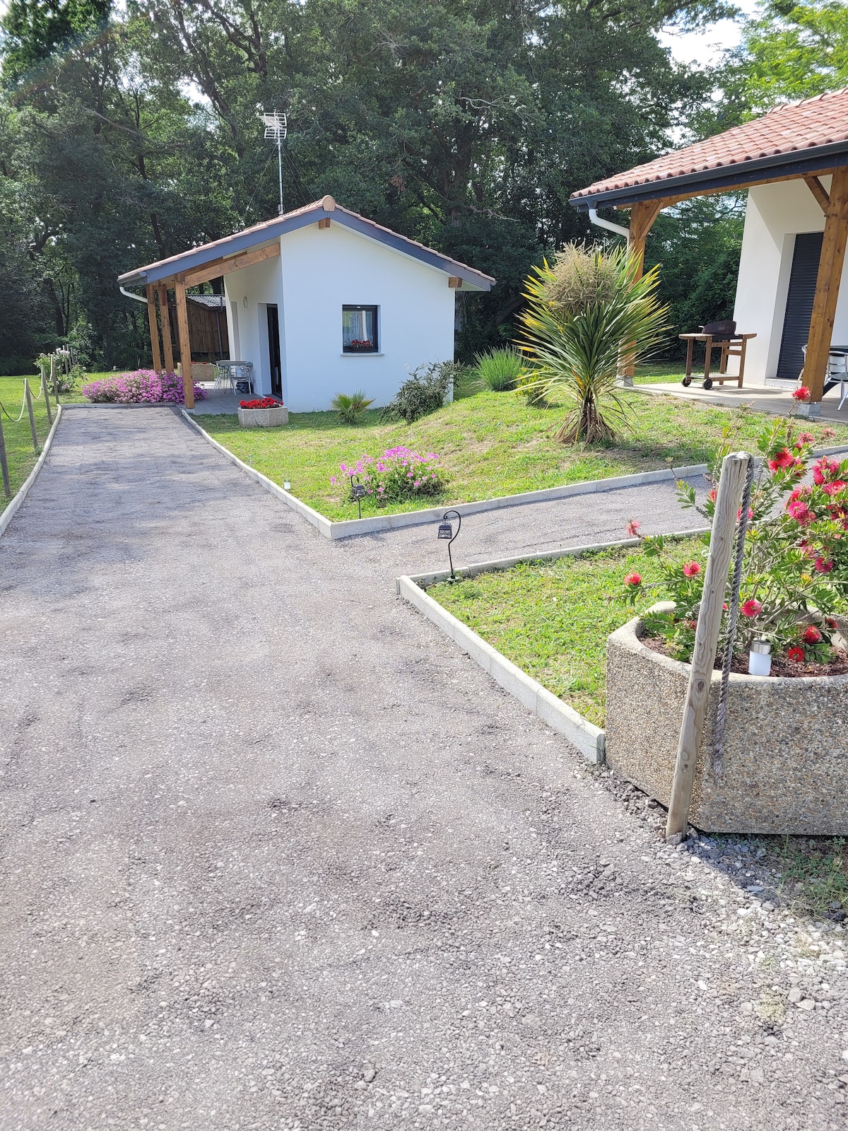 Очень хорошее жилье идеально расположено в тихом месте на озере Лалагибе, недалеко от моря, между Капбретоном и Байонной. Магазины поблизости. Дом с видом на юг/запад, с большой деревянной террасой, не упускается из виду и не зависит от главного дома. Идеально подходит для пар, также может разместить маленького ребенка. Студия подходит для людей с ограниченными возможностями. Возможность укрывать велосипеды.