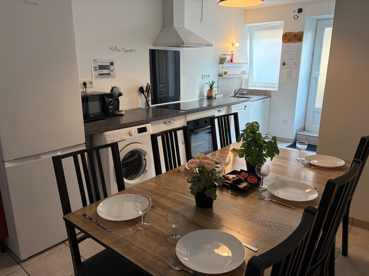 Недавняя квартира в центре деревни со всеми удобствами: курение, пекарни, мясная лавка, продуктовый магазин, ресторан и в 5 минутах от Meximieux (супермаркеты, кинотеатр, рестораны...) Идеальное расположение: 15 минут от электростанции Bugey / Plaine de L 'ain, 5 минут от железнодорожного вокзала Meximieux, 10 минут A 42. Неподалеку вы можете посетить знаменитый средневековый город Перугес, насладиться берегами Айн и всеми природными развлечениями Dombes или Bugey!