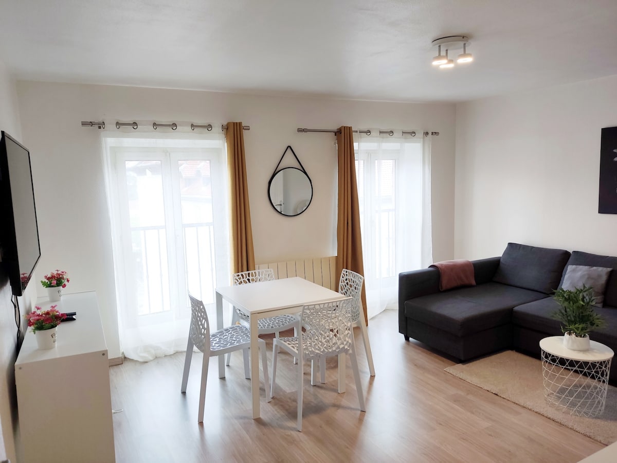 DOMAINE – центр деревни Просторная квартира для двух человек, расположенная в небольшом тихом кондоминиуме, недалеко от магазинов и удобств. Прямой 🚍 доступ к Греноблю по автобусной линии TAG 15 (остановка Verdun Préfecture). 🍞 Магазины у подножия здания: супермаркет, пекарни, поставщик продуктов, итальянский ресторан. 🛏️ Новое постельное белье для спокойного сна Высокоскоростное оптоволоконное📶 подключение. 📺 Smart TV 146 см для вашего досуга. Добро пожаловать домой!