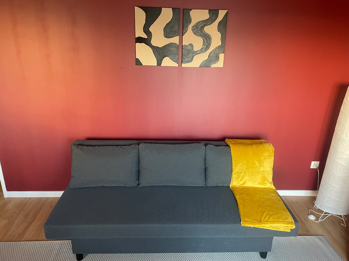 Светлое жилье площадью 35 м2 с коконным гостиничным духом в новом полностью охраняемом здании (видеонаблюдение в здании). Совершенно новое жилье с диваном-кроватью (за дополнительную плату более 2 человек ),телевизор,Wi-Fi, кухня (плита, духовка, микроволновая печь, холодильник, посуда), Nespresso. Полностью новая ванная комната с большим душем в соответствии со стандартами для инвалидов. В спальне удобная кровать 140x200 для двоих .