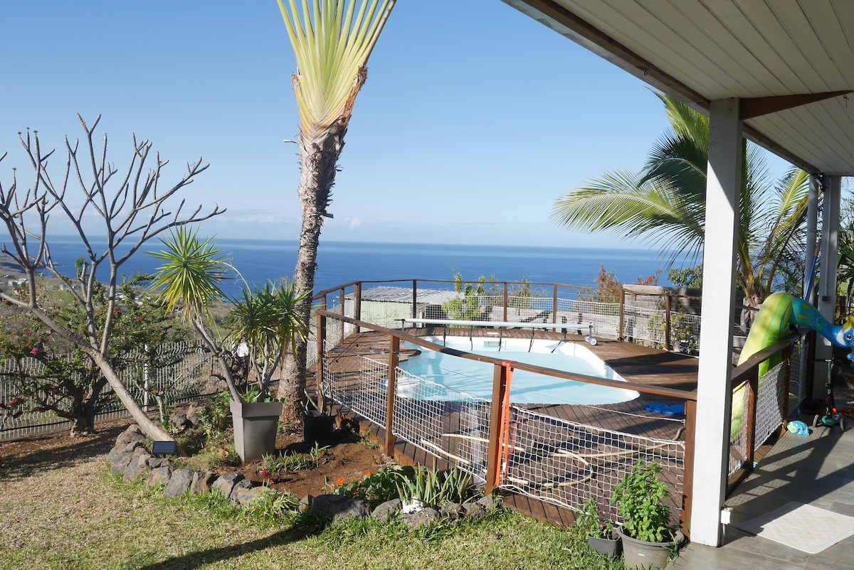 С нашей виллы , из бассейна или с Варанге открывается исключительный вид на океан, залив Святого Павла, мыс Ла Хуссе. Закаты над Индийским океаном будут для вас каждую ночь. Вы насладитесь спокойствием и комфортом нашей виллы, недавно и прекрасно оборудованной: гостиная с двойным потолком полностью выходит на Варанге и кухню . Быстрый доступ к Тамаринс-роуд (10 минут) и пляжам, лагунам (20 минут).