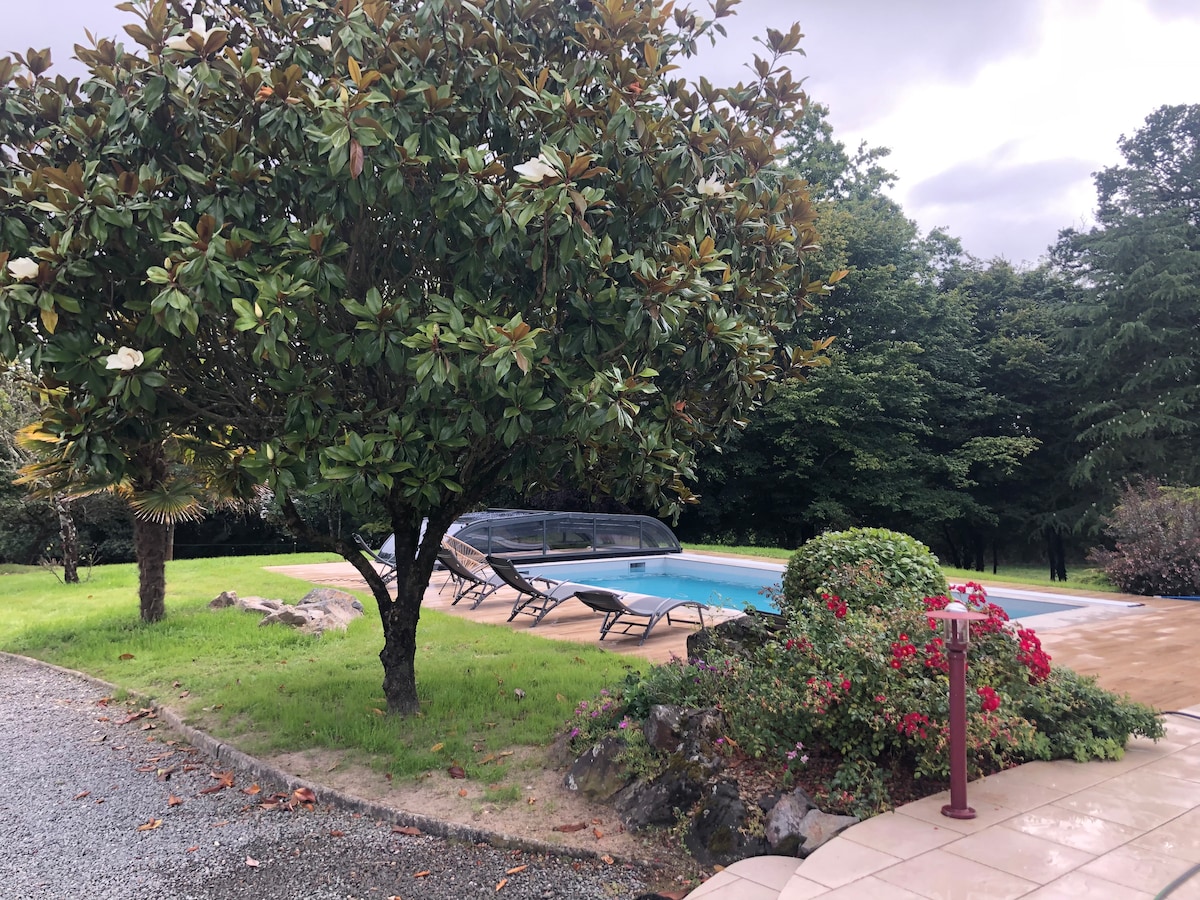 Романтический коттедж с 5-звездочным рейтингом, недалеко от пляжа Гиттьер. Для благополучия. Полностью оборудованный коконный дом с бальнеотерапией и светотерапией и позвольте себе побаловать себя в зеленой обстановке, в самом сердце сельской местности! Насладитесь моментом отдыха, возможностью массажа дуэта, в помещении или в саду с полем птиц! Для вашего комфорта и пребывания в этом пузыре благополучия шеф-повар Ромуальд Шевалье может подарить вам изысканную еду!