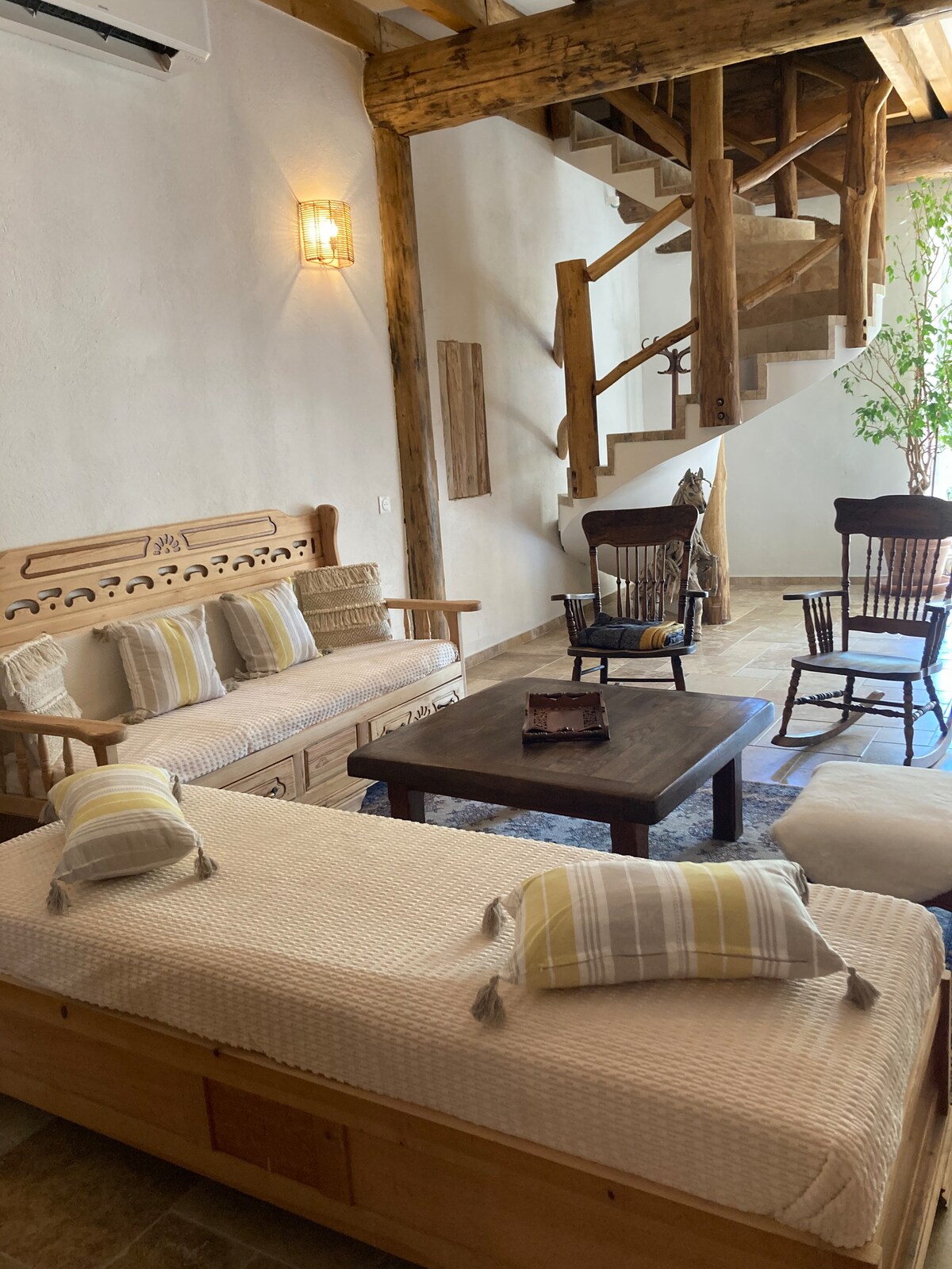 Расслабьтесь в этом тихом и стильном деревенском доме. Вы найдете в коттедже все удобства, позволяющие расслабиться и отдохнуть... Гости могут пользоваться полным коттеджем: - на первом этаже, полностью оборудованная кухня и комната в джакузи. - на верхнем этаже большое пространство с гостиной, гостиной, одной спальней и одной ванной комнатой.