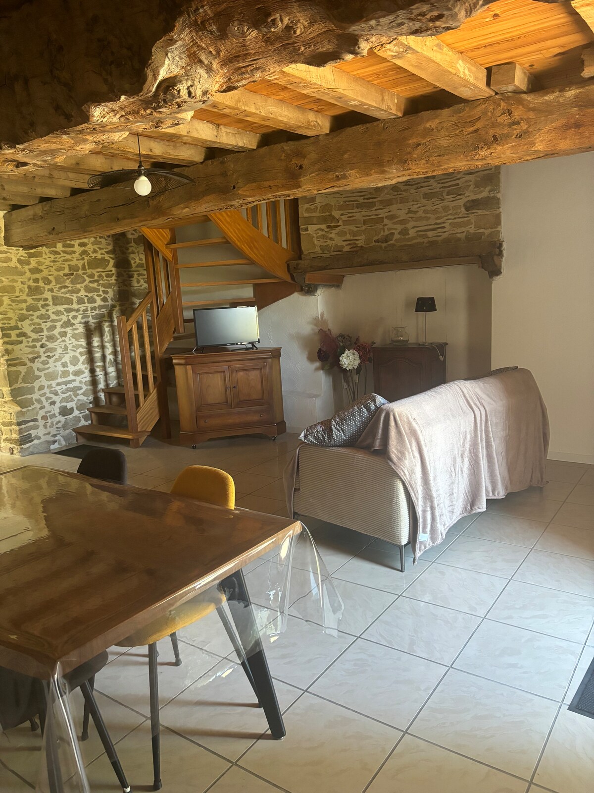 Добро пожаловать в «L 'tai», наш очаровательный каменный дом с видом на долину и прекрасными закатами! Отлично подходит для отдыха. Уютная комната, уютная гостиная с проекционным экраном, офисное помещение (Wi-Fi и оптоволокно), сад, прогулки... Расположенный в центре тропы Lande du Bois Chuppé, он предлагает спокойную, комфортную, созерцательную и живописную обстановку. Аутентичный опыт, где спокойствие и природная красота сделают ваше пребывание незабываемым!