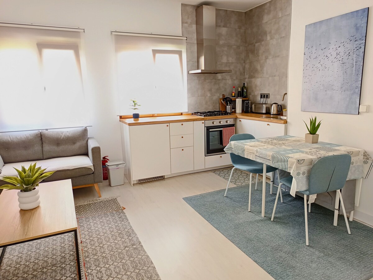 • 5 минут пешком от центра города. • 5 минут на машине от пляжа (30футов пешком). Очень большая парковка у пляжа. • 2 супермаркета и большая открытая парковка очень близко. • Новая полностью оборудованная кухня (стиральная машина, микроволновая печь, тостер, соковыжималка, блендер, скороварка, фритюрница). • Wi-Fi, телевизор с более чем 100 каналами (также для детей). • Недавно отремонтированные, яркие, новые диваны. • В тихом районе деревни, рядом с рыбацким портом. • Первый этаж без лифта. • 3 электрических радиатора