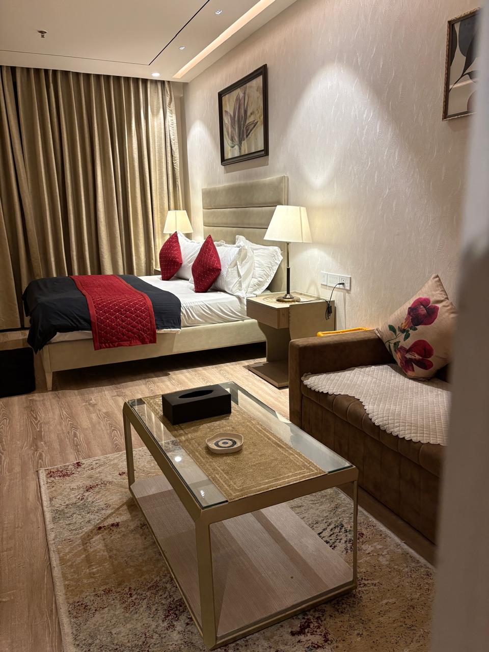 Добро пожаловать в наш удивительный люкс, который расположен на 15-м этаже высотного здания. Эта квартира 2bhk - совершенно свежая. Широкое частное патио с видом на город делает его уникальным в классе. Место идеально подходит для расслабления и наслаждения живописным видом на современную архитектуру. В квартире есть 3 смарт-телевизора (все приложения работают), 2 уютные двуспальные кровати, 2 больших шкафа с шкафчиком, 6-местный диван, стильный журнальный столик, гладильная доска, холодильник, микроволновая печь, индукционная,электрический чайник, тостер и многое другое.