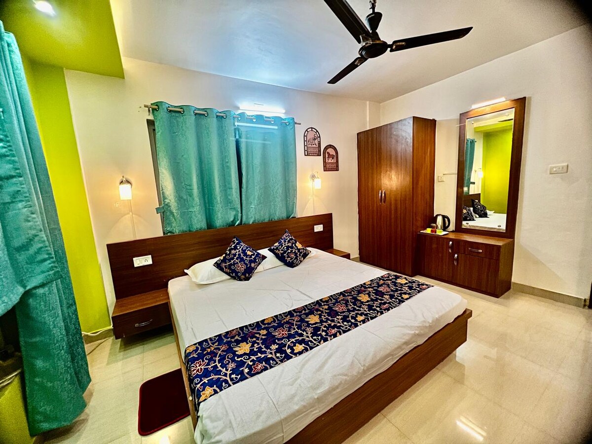 ⚠️Примечание: проживание холостяков и неженатых пар не допускается. Стильная квартира 1BHK в Пури, на Station Road. Всего в 300 метрах от железнодорожного вокзала и недалеко от автобусной остановки. К услугам гостей эстетичные интерьеры, ежедневная уборка. Идеально подходит для семей или пар, ищущих комфорт и удобство. Наслаждайтесь спокойным отдыхом, а на тук-туке или авто доберитесь до пляжей, кафе и ночных клубов Пури. Идеальный отдых начинается здесь!