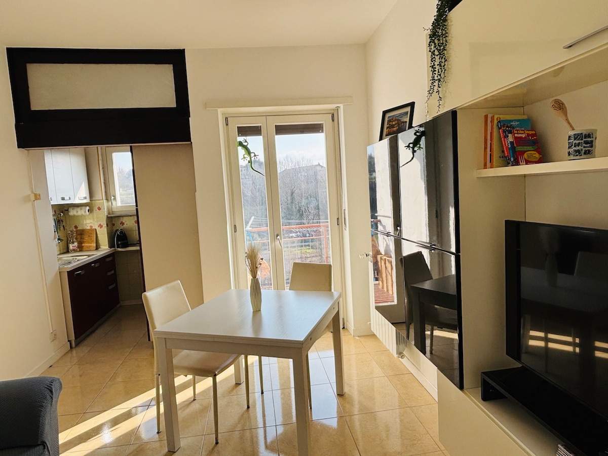 Cozy apartment in a quiet area near the river. With a pleasant walk along the riverbank, you can reach the center of Ivrea. Strategic location for trekking and skiing (50 minutes by car to the nearest ski resorts). Train station is a 15-minute walk away, easy access to the highway and free parking area nearby. Turin is 40 km away. Several possibilities for sports activities nearby: mountain biking, trekking, climbing, kayaking. Or simply enjoy a moment of relaxation on the balcony.