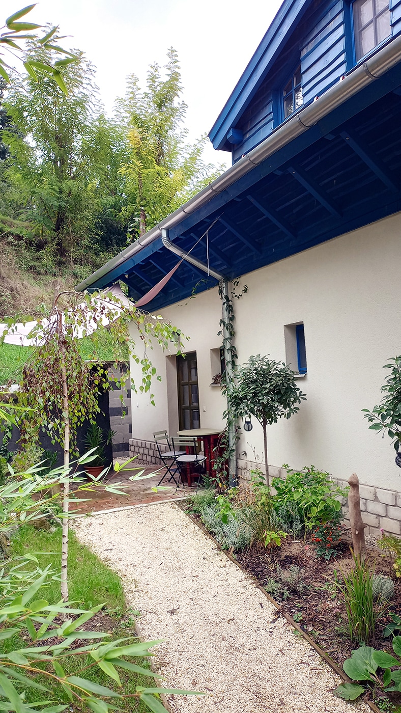 Vendégházunk a Duna-parton található, saját stranddal rendelkezik. Télen-nyáron egyaránt alkalmas bekuckózni, elvonulni, élvezni a víz és a hegyek közelségét. 4 fő számára ideális: 2 fő számára alkalmas háló-gardrób és egy szintén kétszemélyes galéria elosztásban. Konyhánk jól felszerelt: egy könnyű reggeli vagy egy hangulatos vacsora elkészítése sem gond. A kert kialakításánál fontos volt a természetes állapot megőrzése: a füvet környezetbarát módon nyírjuk, így néhol vadnövények virágoznak.