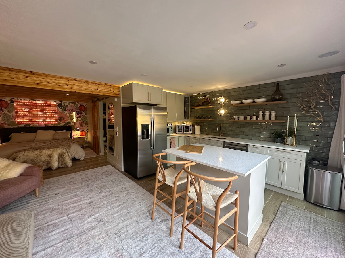 Этот частный гостевой дом-студия, расположенный у подножия каньонов, станет вашим убежищем для восстановления сил. Дизайн с оттенком естественной современной роскоши, насладитесь минималистичным комфортом с приятными удобствами: кедровой сауной, частной гидромассажной ванной и тихим двором под звездами с камином. Каждый элемент интерьера создан для восстановления сил и энергии. Идеально подходит для спортсменов, отдыхающих после соревнований, и пар, ищущих тихого романтического уединения.