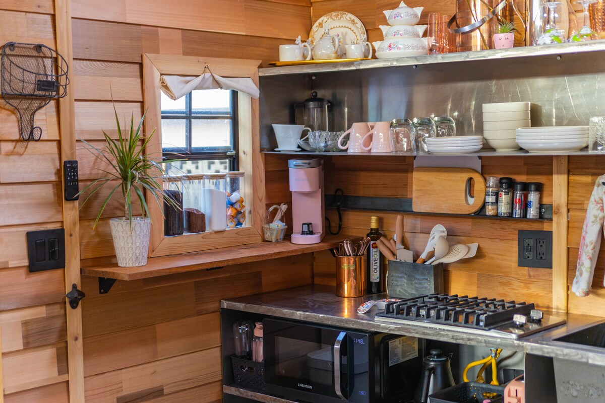 Уединитесь в этом уникальном кедровом домике, расположенном в центре города. Продуманный дизайн с современным уклоном, просторные окна, наполняющие интерьер естественным светом, но сохраняющие уютное, уединенное ощущение. Снаружи есть частный двор, где вы найдете антикварную ванну/душ на львиных лапах, идеально подходящие для отдыха под открытым небом. В интерьере элементы индустриального стиля органично сочетаются с теплыми кедровыми тонами, создавая привлекательную атмосферу, идеально подходящую как для отдыха, так и для вдохновения.