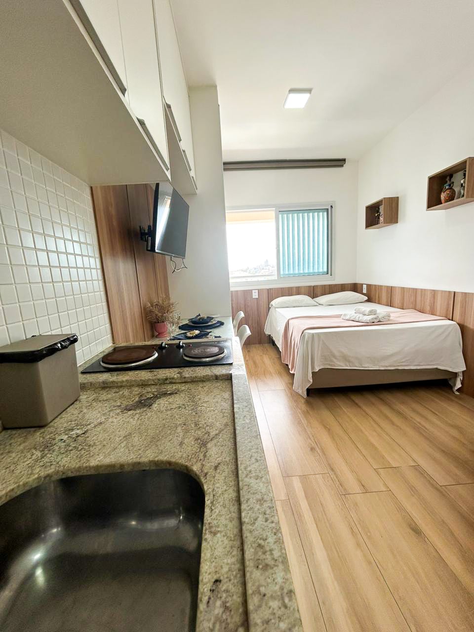 O apartamento é compacto, super funcional sem perder o conforto. Seu acesso será Self Check-In apresentando documentação na portaria 24 horas e acessando apartamento com senha para fechadura eletrônica. O AP está completo com roupas de cama e banho, eletrodomésticos, split , tv Smart, Cooktop, liquidificador, sanduicheira, cafeteira, ferro elétrico, Wi-Fi e utensílios de cozinha, tudo pra você se sentir em casa.