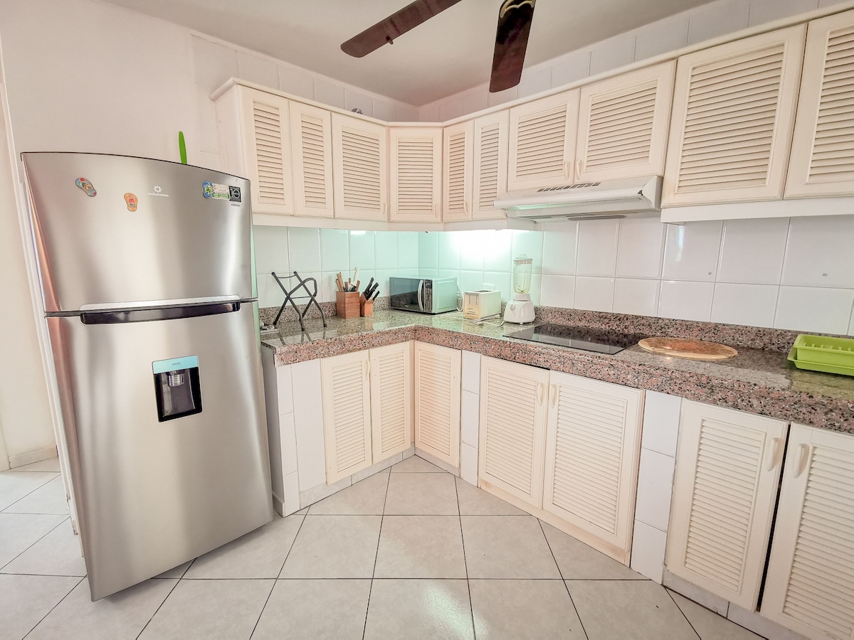 Хорошая квартира для семейного отдыха (без встреч и вечеринок), с Wi-Fi, Netflix, главной спальней и дополнительной спальней. В лучшем секторе внутри Касабланки с видом на море, идеально подходит для наслаждения безопасным и расслабленным отдыхом. Внутри Касабланки есть рестораны, магазины, теннисные корты и гольф. Он оборудован полной кухней. Имеет большой балкон с видом на океан. В комплексе есть два бассейна, постоянная охрана и охранник