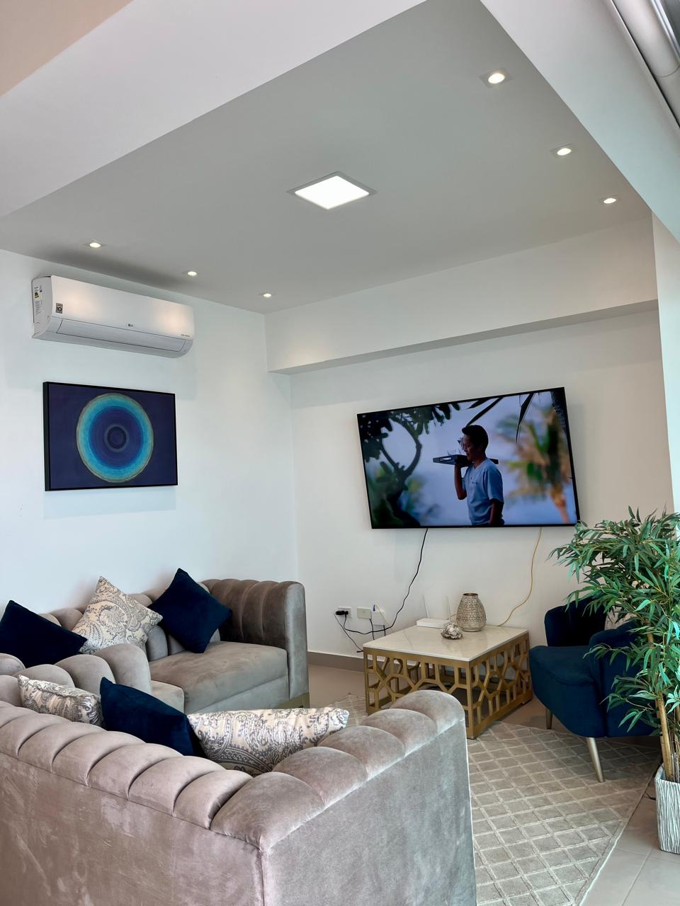 Квартира расположена на четвертом этаже Torre II курорта Playa Azul с удобствами, которые гарантируют комфорт и безопасность 24 часа в сутки. К услугам гостей большие социальные зоны отдыха, гамаки в окружении пальм, большие бассейны для детей и взрослых и 2 джакузи, теннисный корт, настольные игры. Квартира отлично подходит для пар с детьми или для работы. В люксе есть письменный стол и подключен к интернету.