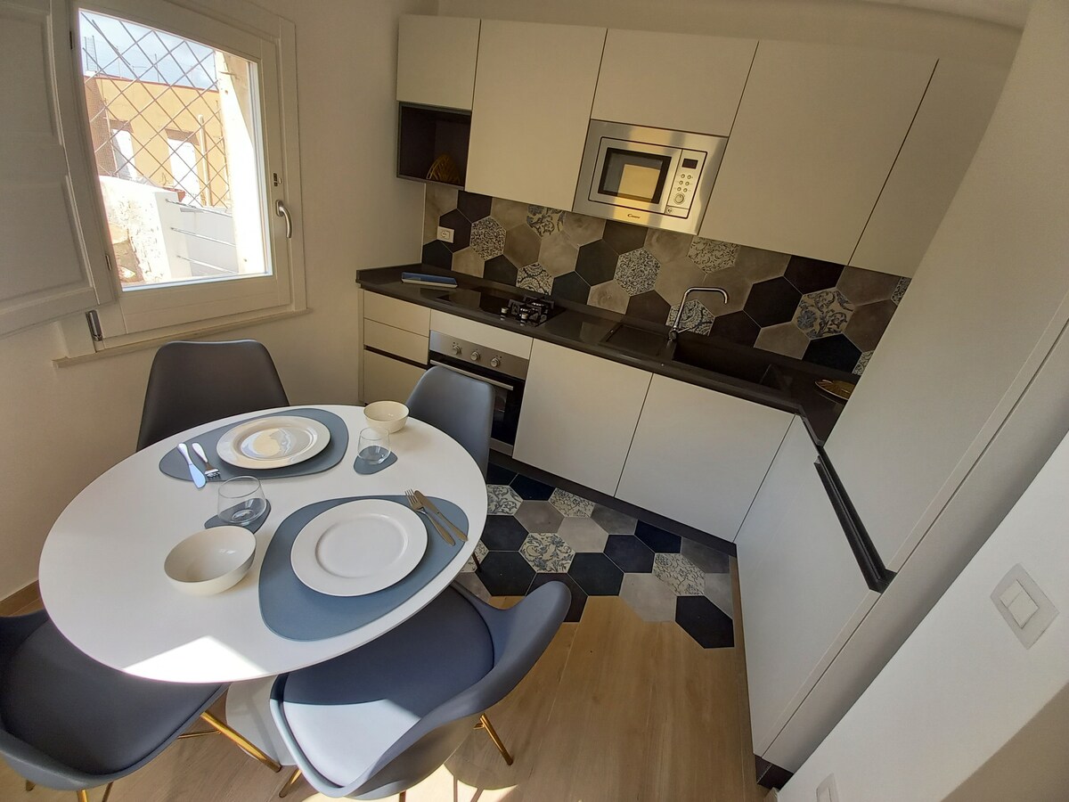 Большая квартира площадью около 45 квадратных метров с кухней, оборудованной всем необходимым. Smart TV, Доступны микроволновая печь, чайник и кофемашина с капсулами. Ванная с большим душем, очень удобная. Джакузи на двоих Очень хороший балкон, чтобы насладиться всем расслабляющим. Все это в центре Сиракуз, в нескольких шагах от Ортиджии и Археологического парка Возможность бесплатного хранения багажа Супермаркет и автобусная остановка до аэропорта CT рядом с жильем.