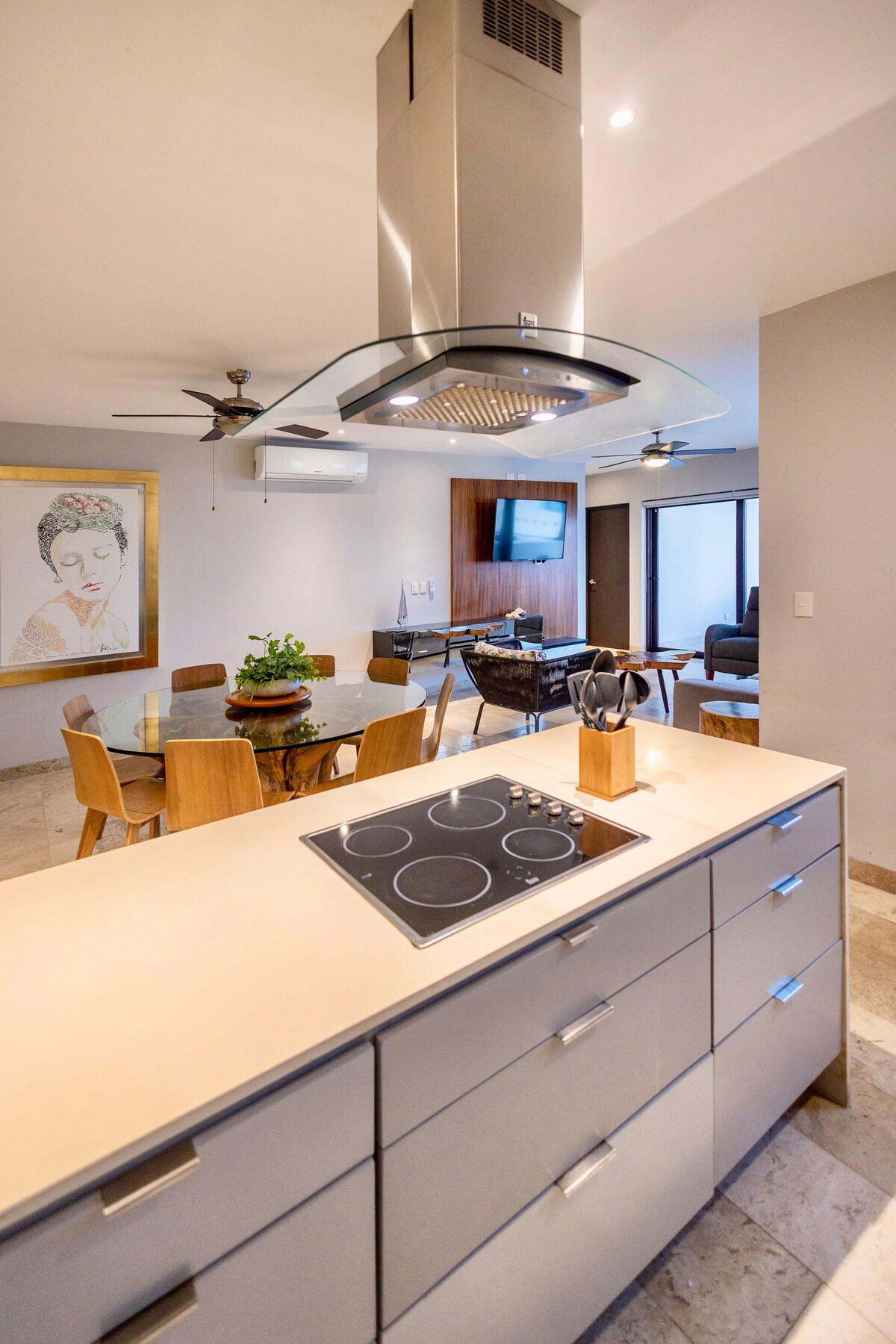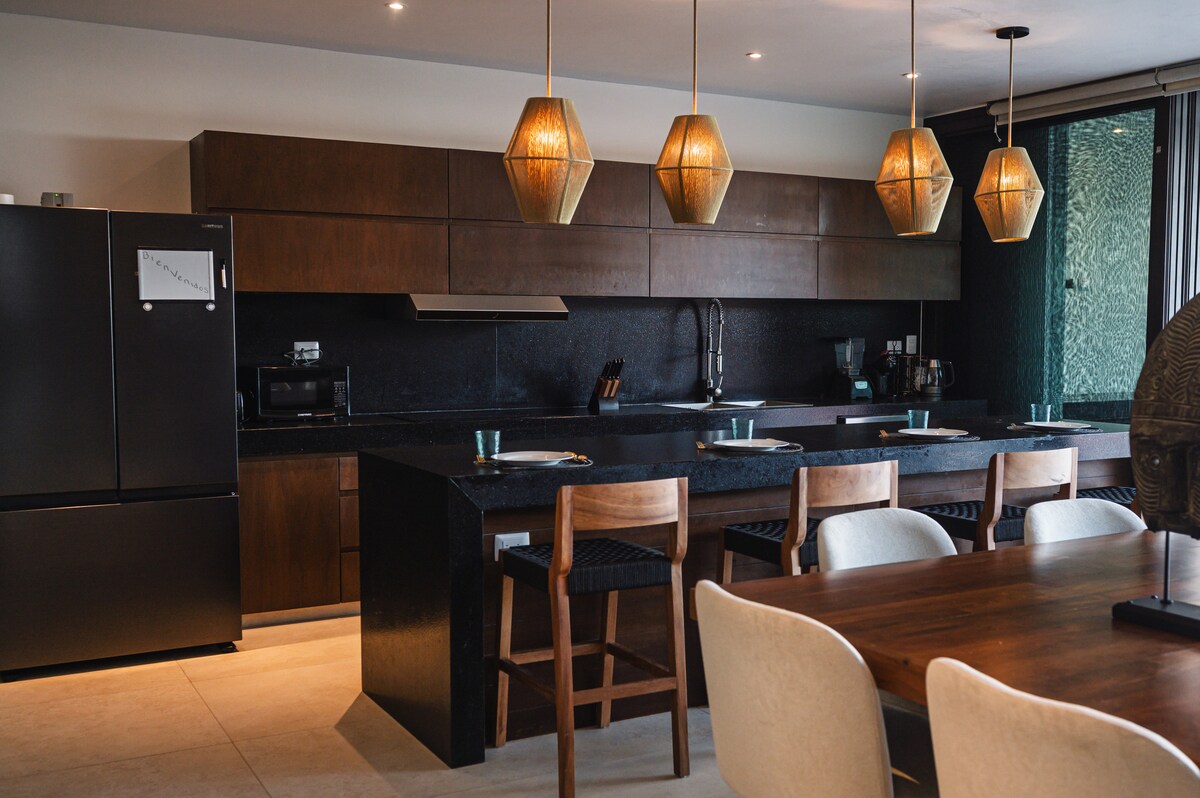 Насладитесь тропическим отдыхом с потрясающими видами на пляж с одной стороны и на лагуну с другой стороны. Наша квартира - ваш идеальный отдых с удобствами в курортном стиле, тремя спальнями и тремя с половиной ванными комнатами, полностью оборудованной кухней и удобствами для семейного отдыха. Забронируйте проживание у нас и погрузитесь в красоту и спокойствие полуострова Юкатан. Мы с нетерпением ждем возможности принять вас и сделать ваше пребывание незабываемым!