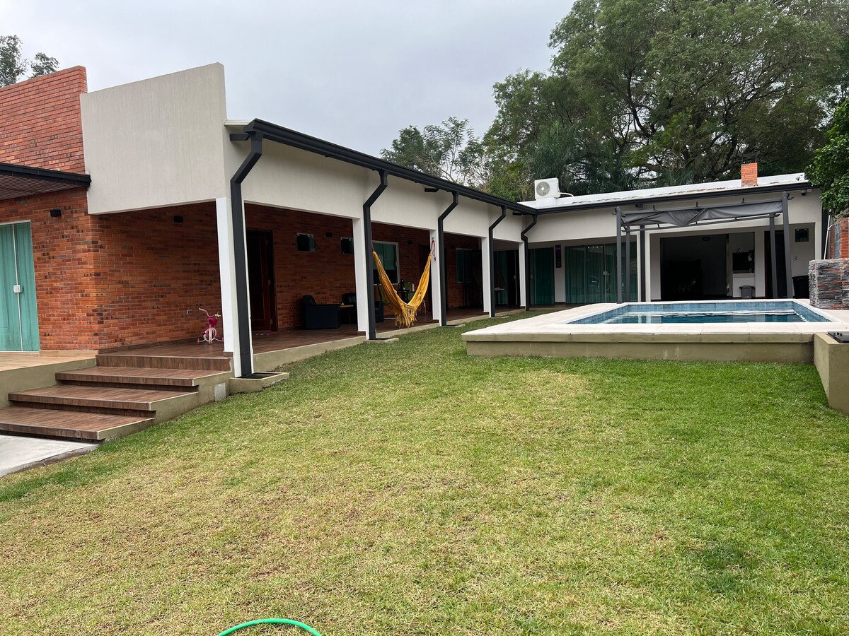 Ideal para relajarse con toda la familia y amigos en este tranquilo lugar rodeado de áreas verdes. - Planta Baja: Cuenta con piscina, jacuzzi, quincho abierto, parrillas, chimeneas, un amplio patio, tatacuá, dos baños y el área social integrada a la cocina/comedor. - Planta alta: cuenta con dos habitaciones, una con cama matrimonial (más una adicional), la otra cuenta con 2 camas twin (más 2 adicionales) , y un baño compartido. A tan solo 200mts del Country Club SB. Camino a Pirayu'i.