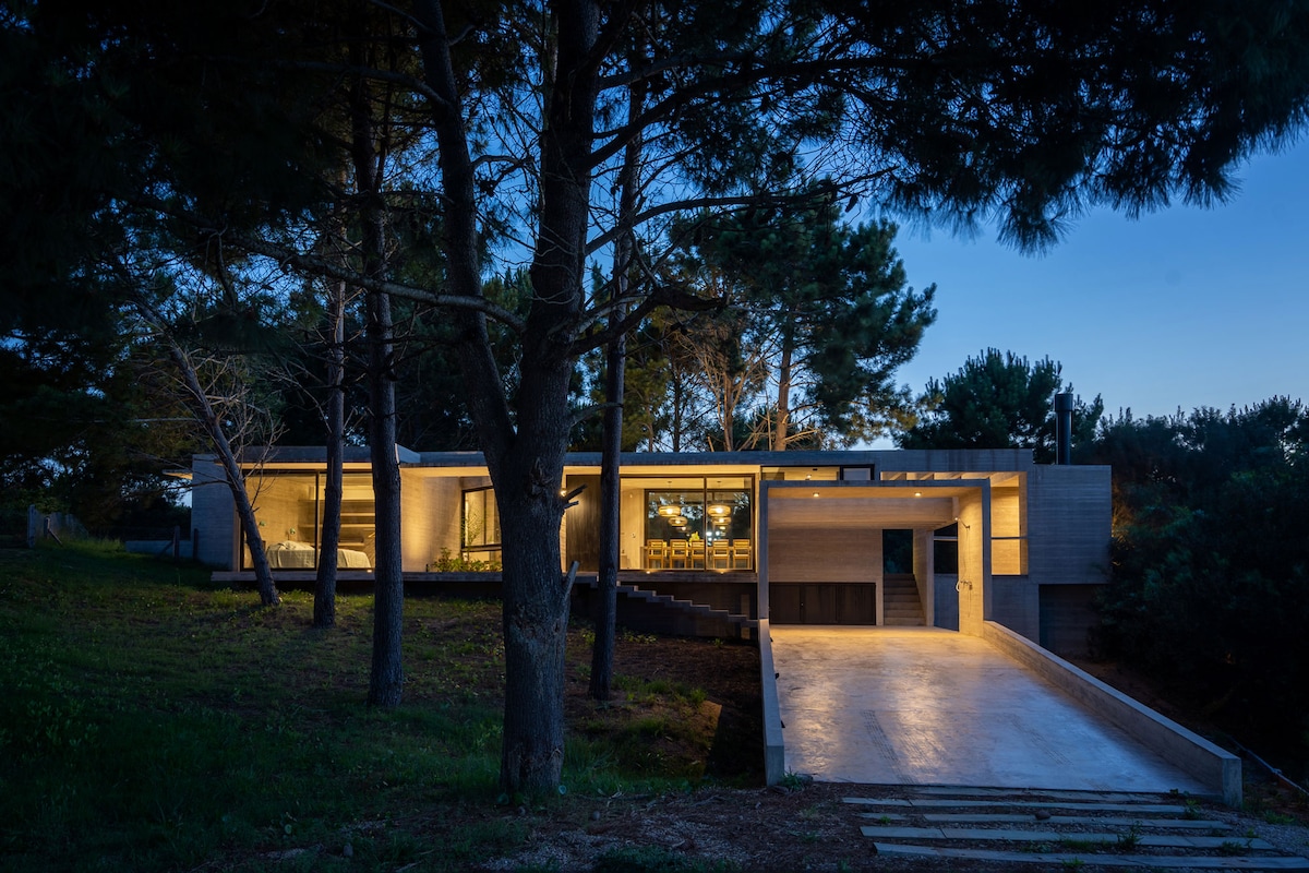 Ubicada en el corazón del bosque, esta moderna y elegante casa de una planta ofrece un refugio único, rodeado de árboles y la tranquilidad de la naturaleza. Con amplios espacios diseñados para disfrutar del entorno, podrás relajarte mientras contemplas increíbles atardeceres y escuchas el sonido de la fauna local. Pensada para disfrutar al máximo del aire libre, con una extensa galería semicubierta, piscina, parrilla y fogonero, donde podrás compartir momentos inolvidables con familia o amigos.