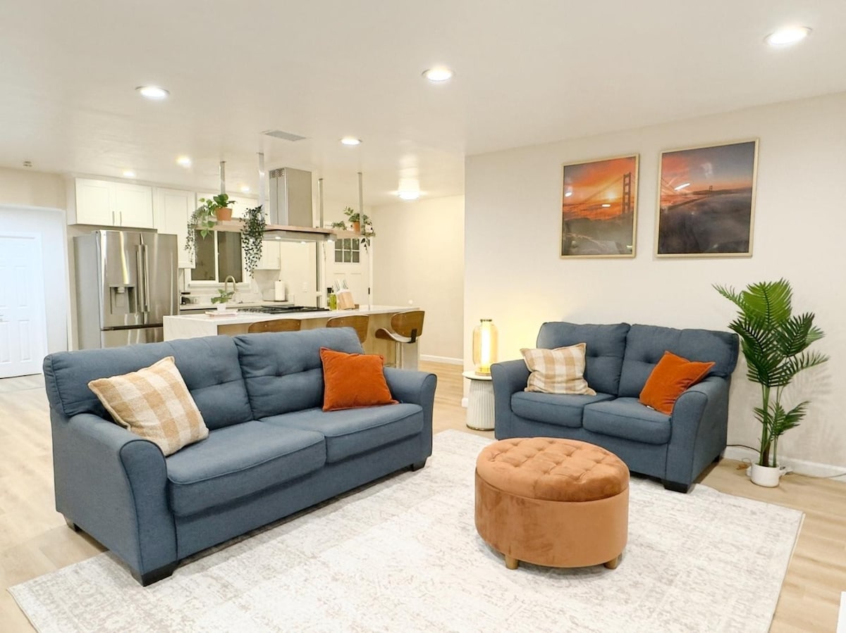 Всего 7 минут до аэропорта Сан-Франциско! Этот уютный дом с 2 спальнями и 1 ванной комнатой в дружелюбном Дейли-Сити предлагает комфортное и удобное проживание для путешественников. Продуманный дизайн с современными штрихами, это идеальное место, чтобы отдохнуть после знакомства с Сан-Франциско. Что вам понравится: 1️⃣ 2 просторные спальни и 1 чистая ванная комната. 2️⃣ Светлая гостиная с современным декором 3️⃣ Открытая кухня со стиральной машиной 4️⃣ Легко припарковаться на улице и у дома 5️⃣ До автобусных остановок, продуктовых магазинов и ресторанов можно дойти пешком.