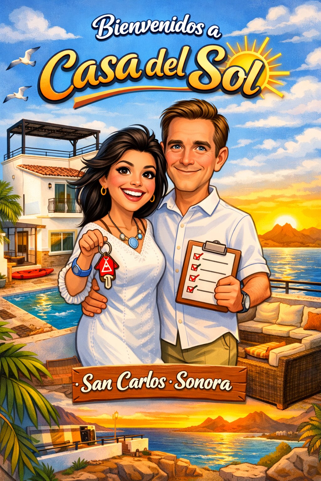 Welcome to Miranda’s Fun House, a hidden gem tucked away in the tranquil Bay of San Carlos. This stunning beachfront home has everything you need for an unforgettable getaway — space, comfort, privacy, and an unbeatable location with direct beach access and breathtaking views of the sea and the iconic Tetakawi mountain. The property features 5 spacious bedrooms and 4.5 bathrooms, making it the ideal place for large families or groups to enjoy quality time together.