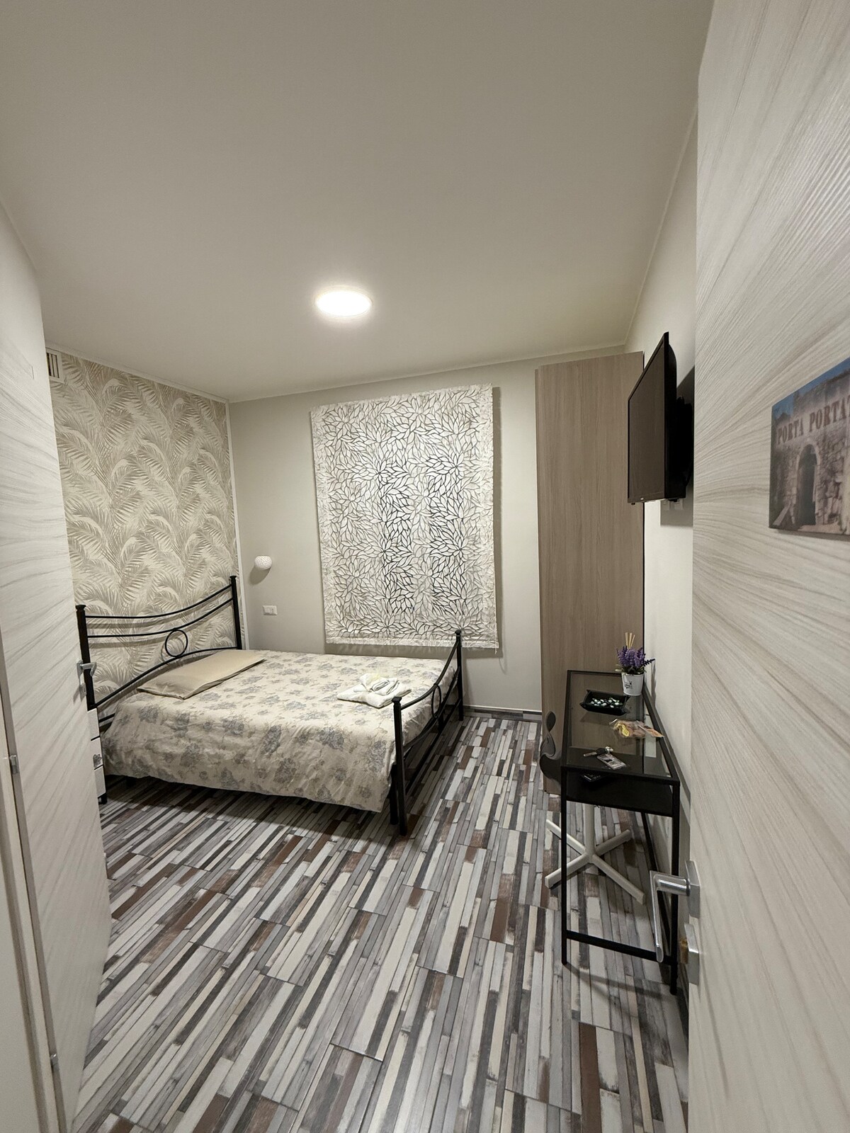 Elegante e confortevole la camera, con vista sul giardino, dispone di tutti i comfort: aria condizionata, wifi, TV. Possibilità di letto matrimoniale o due letti singoli. Amenities da bagno, macchina Nespresso per il caffé mattutino in camera con capsule in omaggio. Acqua in omaggio. Pantofole di cortesia. La struttura non è accessibile a chi ha problemi motori (no ascensore).