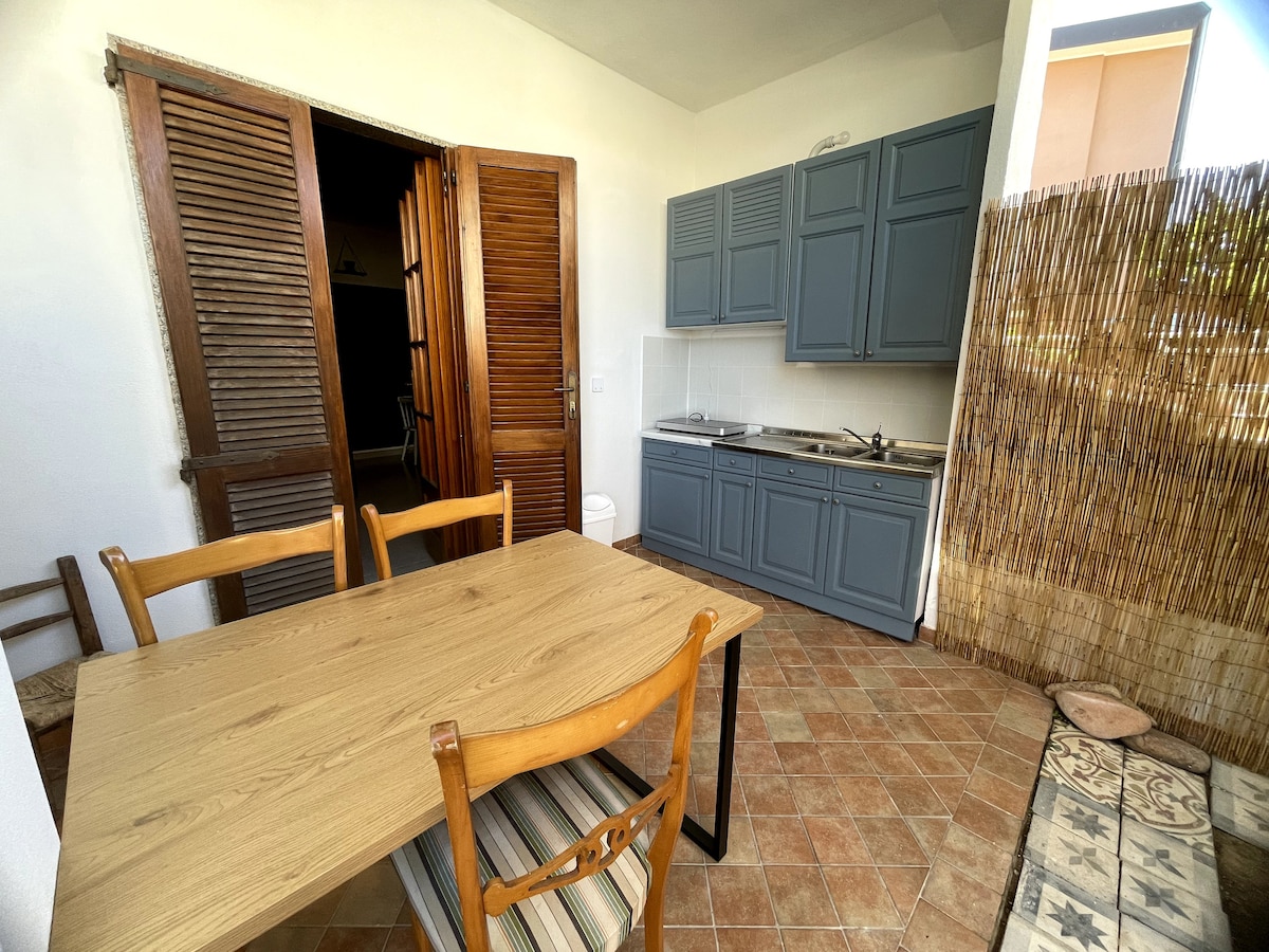 Комфортабельные и функциональные апартаменты со спальней с кроватью размера Queen size и односпальной кроватью, письменным столом и шкафом. Собственная ванная комната со стиральной машиной и всем необходимым. Кухня расположена на открытом воздухе под открытой верандой; она оборудована двумя индукционными плитами, посудой, холодильником, зоной отдыха и обеденным столом. Кроме того, в жилье есть кондиционер и вентиляторы. Телевизор и Wi-Fi. Вы можете припарковаться на небольшой улице перед домом; велосипеды и мотоциклы также можно припарковать в саду.