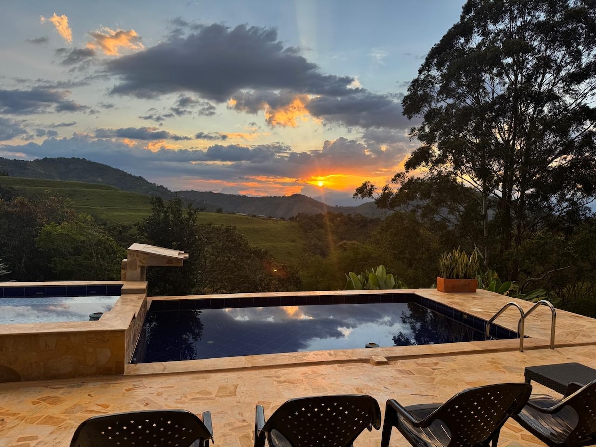 Подарите себе отдых за городом: просыпайтесь под пение птиц, любуйтесь видами на горы и наслаждайтесь теплом Антиохии — всего в 45 минутах от Медельина. Этот потрясающий дом Casa Campestre расположен в безопасном закрытом комплексе в Сопетране и предлагает идеальное сочетание роскоши, уединения и природы. Идеально подходит для семейного отдыха, поездки с друзьями или романтического отдыха для пар. Поплавайте в собственном бассейне, расслабьтесь в большом джакузи с подогревом под звездным небом, устройте барбекю или просто отдохните под музыку с напитками — вы сами выбираете, как провести время.