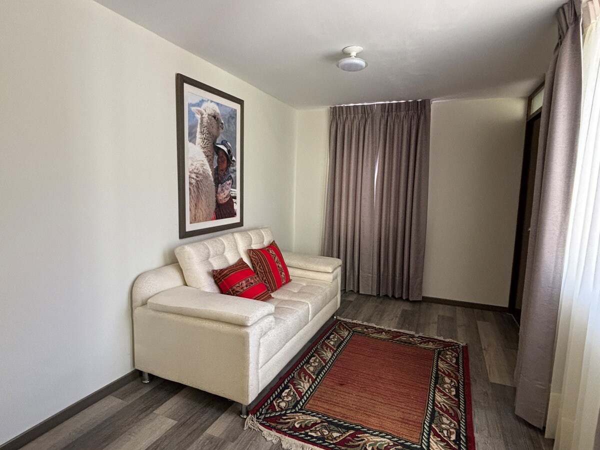 Остановитесь с семьей или друзьями в этом месте на углу Plaza de Chivay, вблизи достопримечательностей. Оно расположено на третьем этаже, имеет 2 спальни, одна с двуспальной кроватью, а другая с 3 кроватями на 1,5 места, обе с 55-дюймовым смарт-телевизором, кухню с открытой планировкой, небольшую столовую на 6 человек и небольшую гостиную, горячую воду 24 часа, Wi-Fi и гараж.