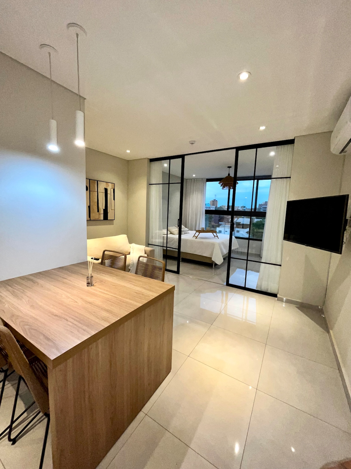 Супер уютная и новая квартира в 1,5 км от торгового центра Costanera и Mercado super 6, рядом с пляжем Mboí kaê, с видом на Costanera, хорошо подходит для прогулок и с потрясающим бассейном, чтобы расслабиться в летние дни.
