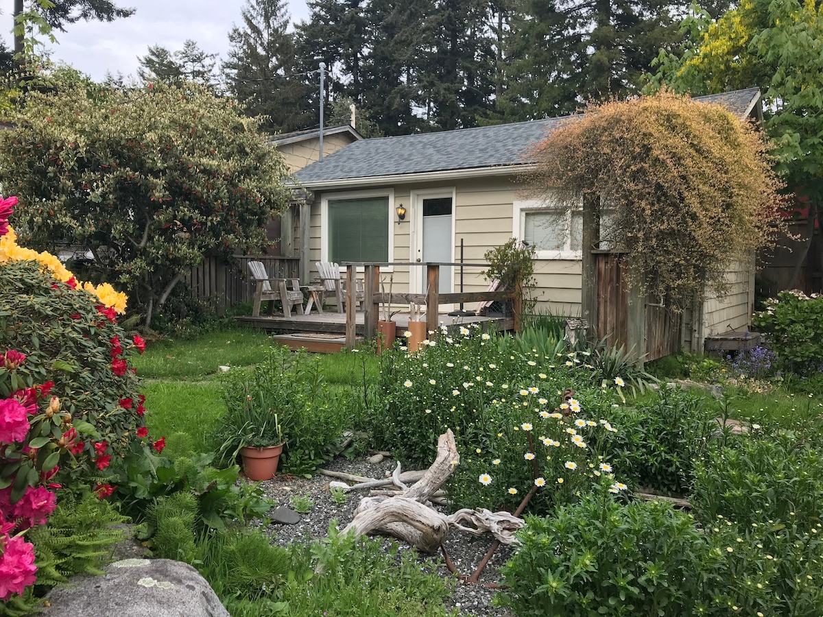 Остановитесь в нашем недавно построенном частном гостевом люксе, который примыкает к основному дому, но очень уединенный. Отдельный вход через крыльцо или в общее фойе. Ванная комната с подогревом плиточного пола и бескаркасной стеклянной душевой дверью. Кровать размера Queen size, зона отдыха с любовным сиденьем. Телевизор с плоским экраном + Wi-Fi Палуба со столом и стульями. Мини-кухня оснащена небольшим холодильником, кофемашиной Nespresso, тостером, микроволновой печью, французским прессом + электрическим чайником. Рядом с государственным парком Моран, Росарио и Doe Bay Resort.